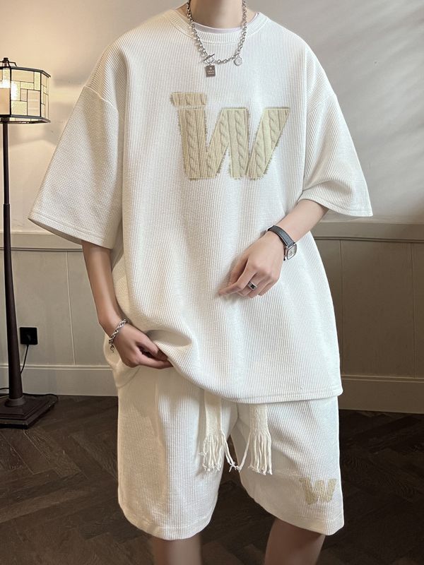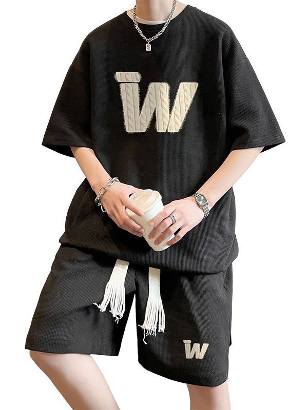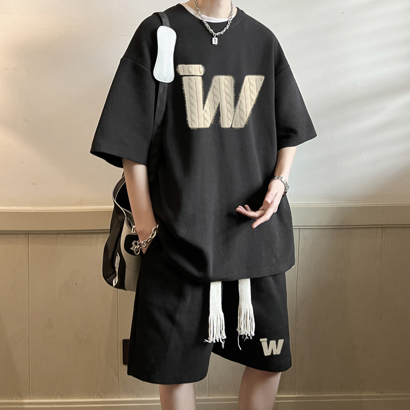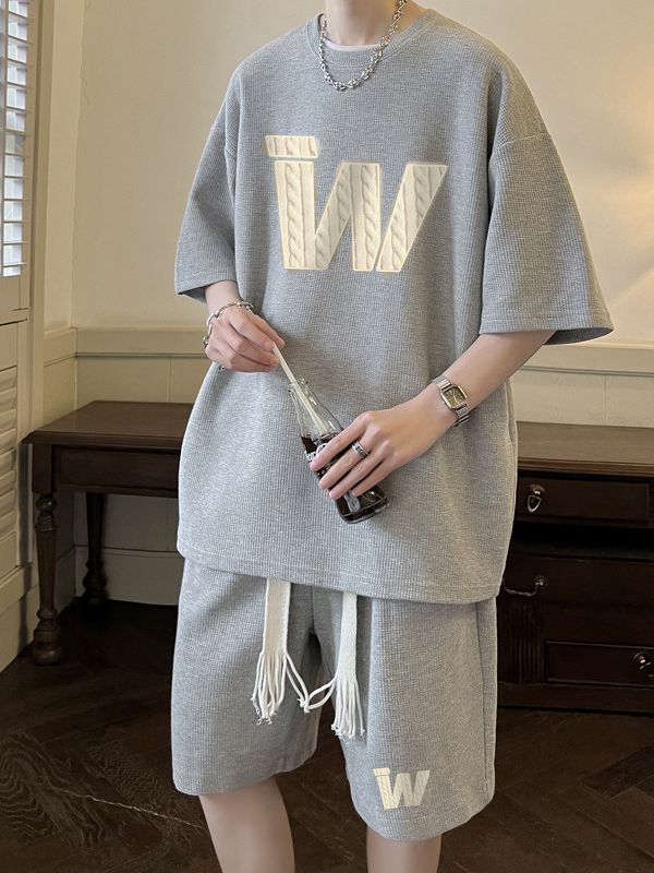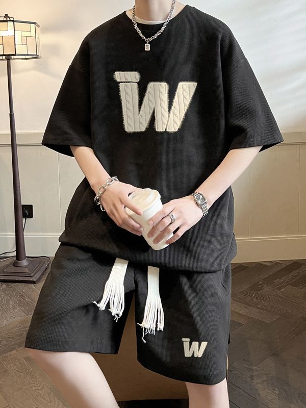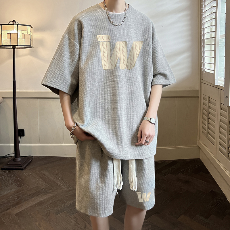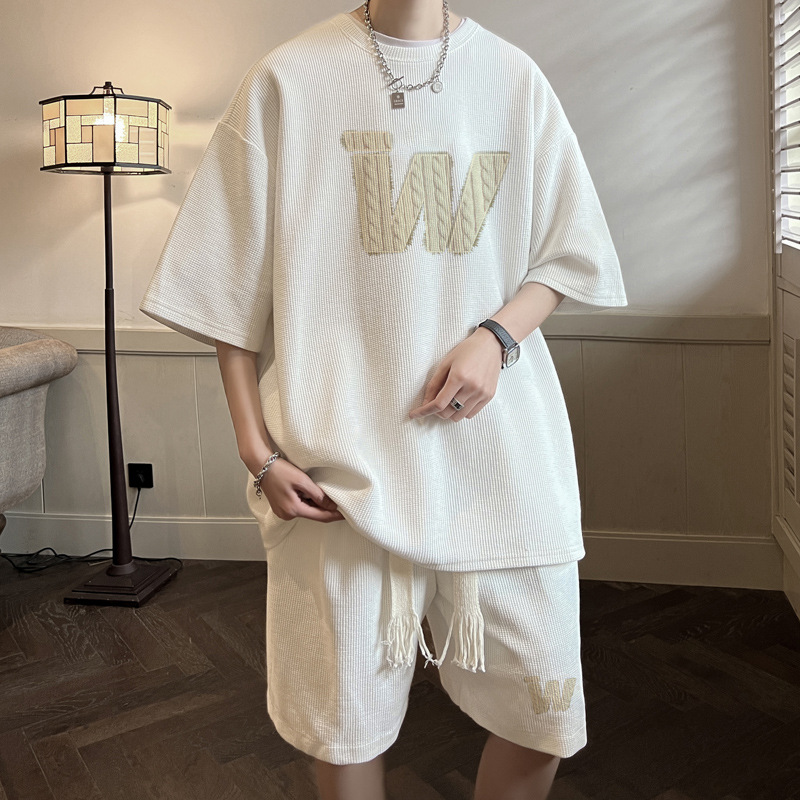 Главная страница > Вафельная футболка с короткими рукавами, мужской летний тонкий костюм из ледяного шелка, комплект для мальчиков, подходящая к красивому мужскому костюму