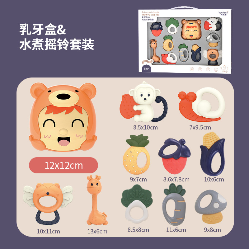 Youlen Детская ручная погремушки Зубная резина 0-3 месяца новорожденный успокаивающий ребенок развивающая игрушка 1 год подарочная коробка набор