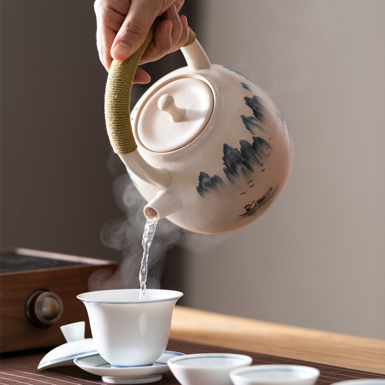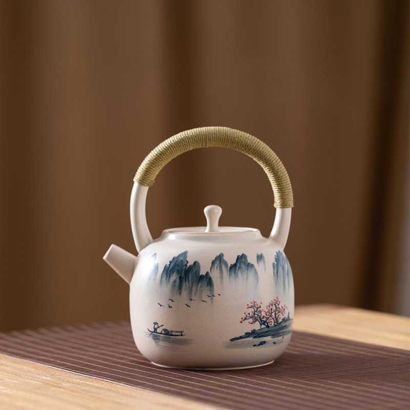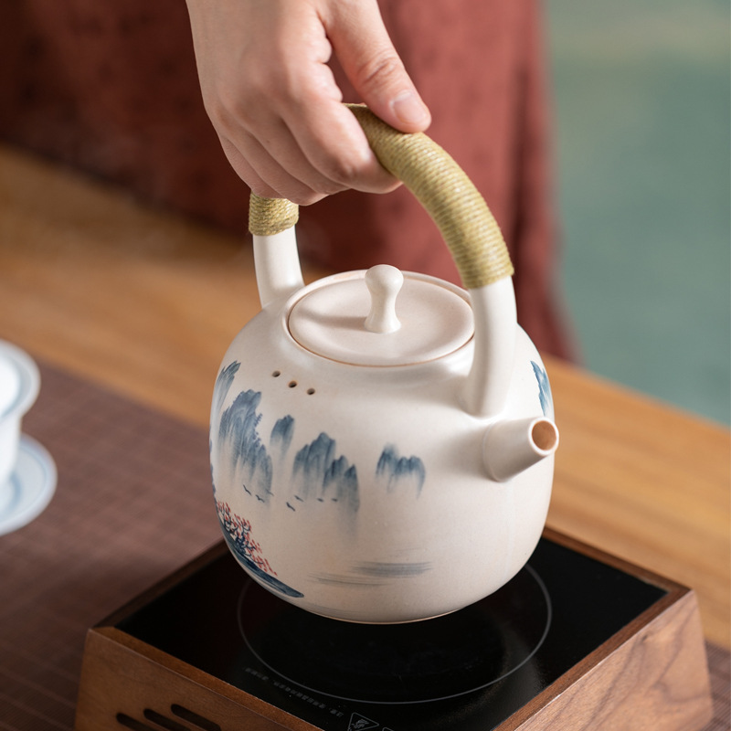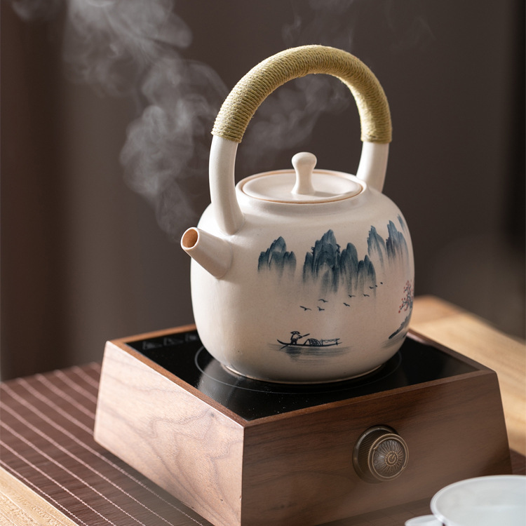 Главная страница > Винтажный чайник с ручной росписью, чайный сервиз, чайник кунг-фу, керамический чайник для кипячения, большой емкости, открытый огонь
