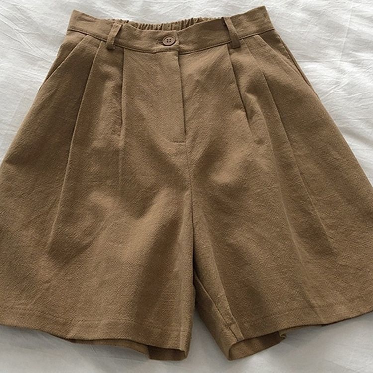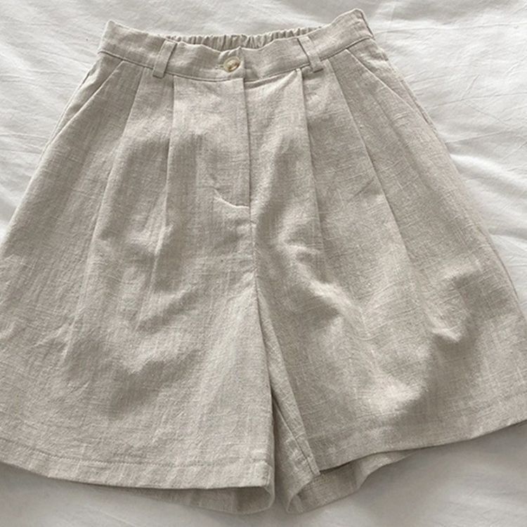 Главная страница > Лето 2025, дышащие шорты из хлопка и льна, тонкие льняные широкие брюки с высокой талией в японском стиле, повседневный костюм для женщин