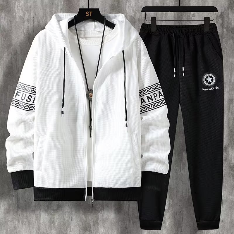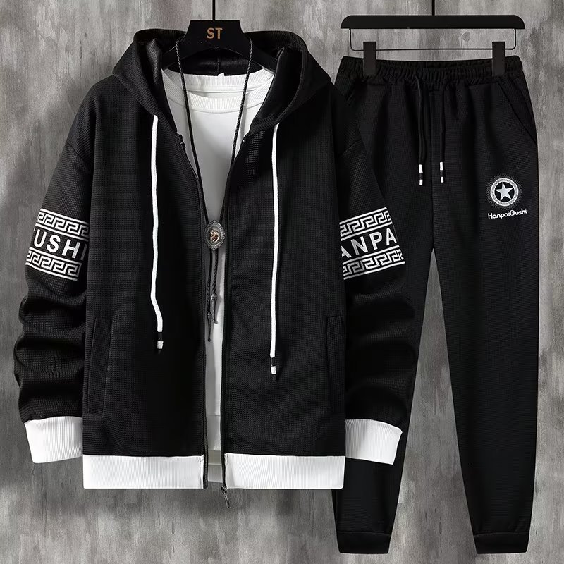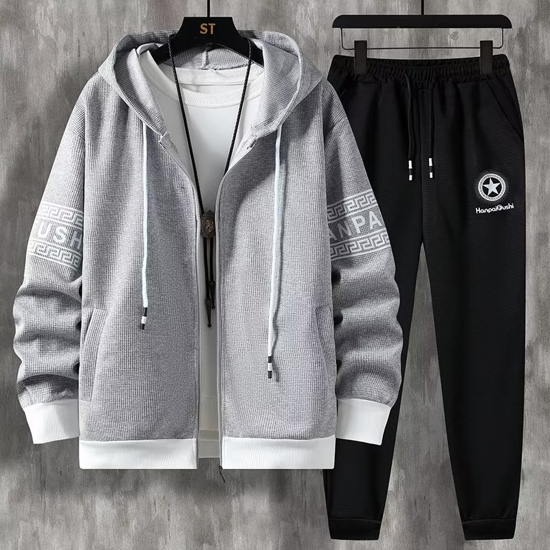 Главная страница > Осенний мужской свитер с капюшоном, свободный повседневный кардиган, мужской подростковый топ на молнии, набор брюк 7701