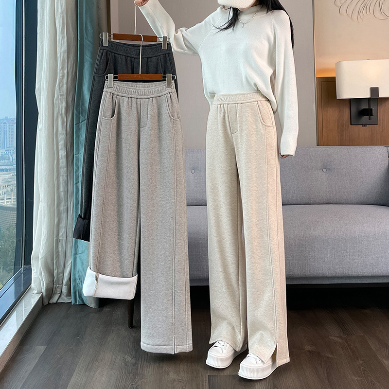 Главная страница > Фактическая елка плюс бархатные широкие брюки женские осень-зима 2024 новые шерстяные брюки с открытой вилкой прямые банановые брюки