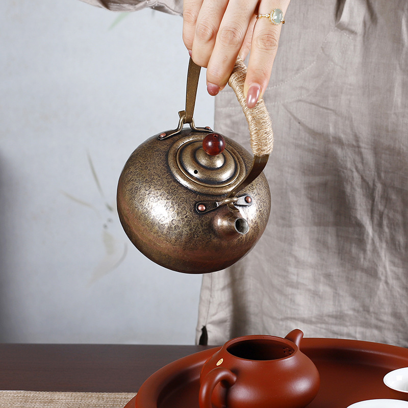 Чистый ручной работы, медный чайник, латунный чайник, замоченный чайник, вскипятенный чайник, медный горшок, кунг-фу, медный горшок, ретро, серебряный горшок