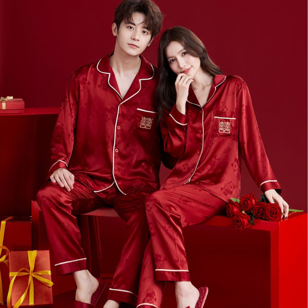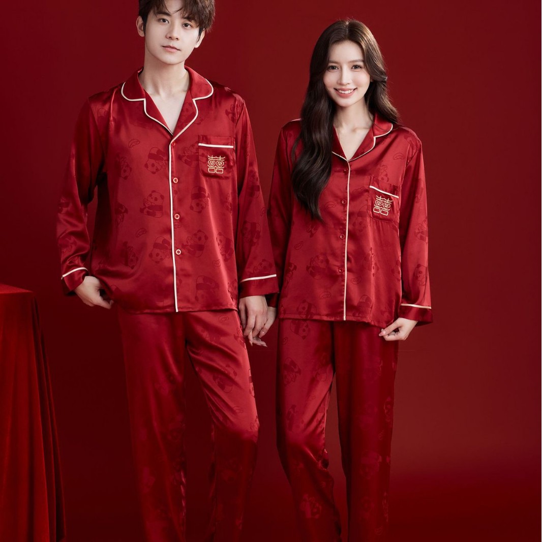 Главная страница > Свадебные пижамы для пар, красные, весна-осень, с принтом панды, для торжественных случаев, подарок молодоженам, праздничный комплект, домашняя одежда 1210