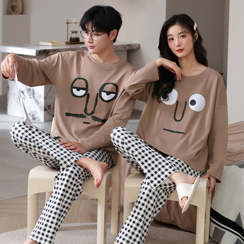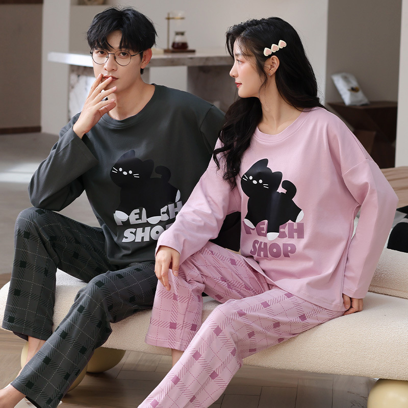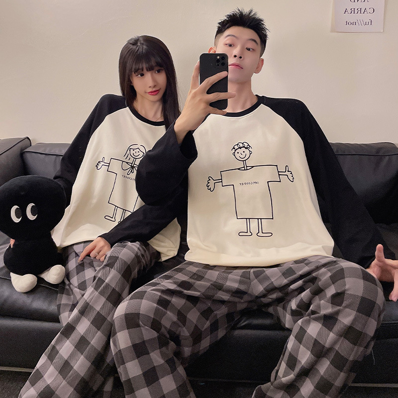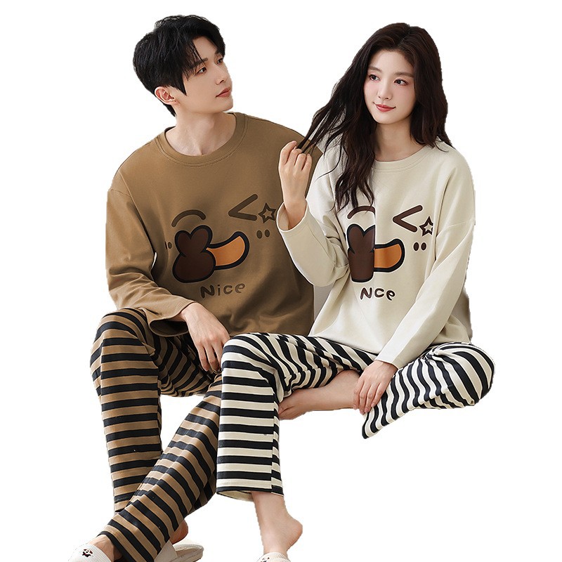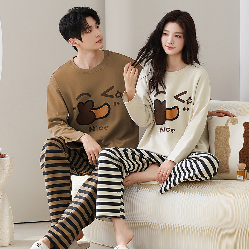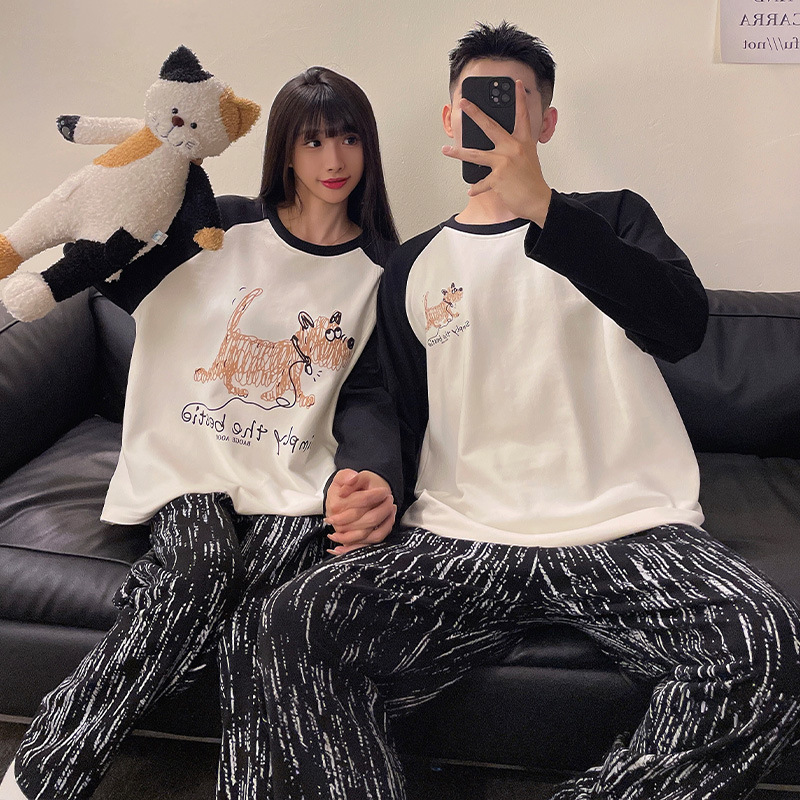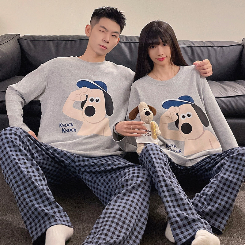Главная страница > Пара пижамы осенние и зимние длинные рукава мультфильм милый сладкий сеть красный ветер свободный повседневный мужской женский костюм