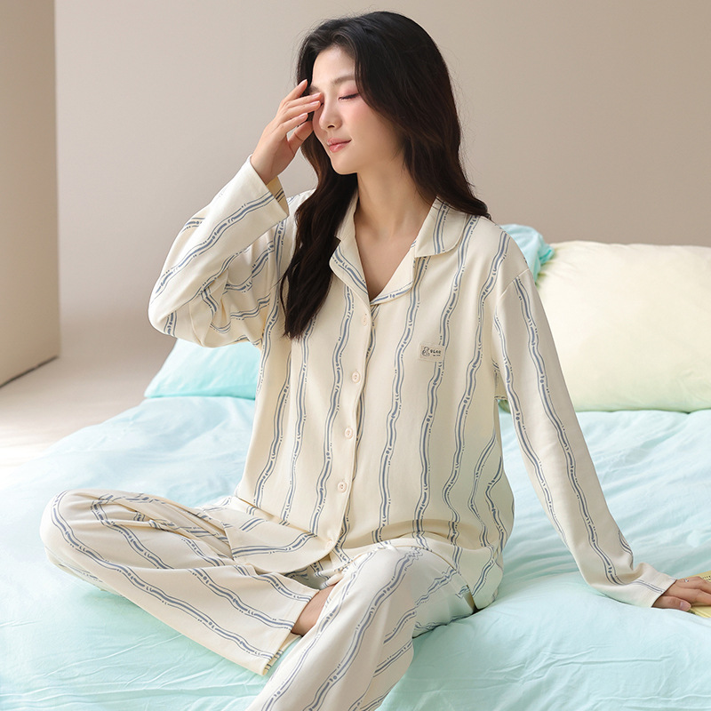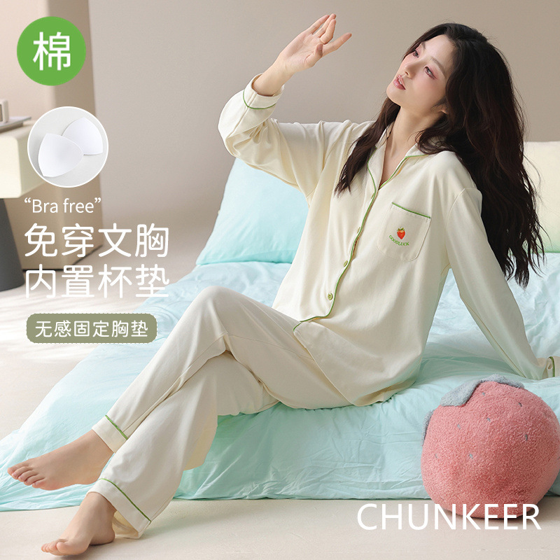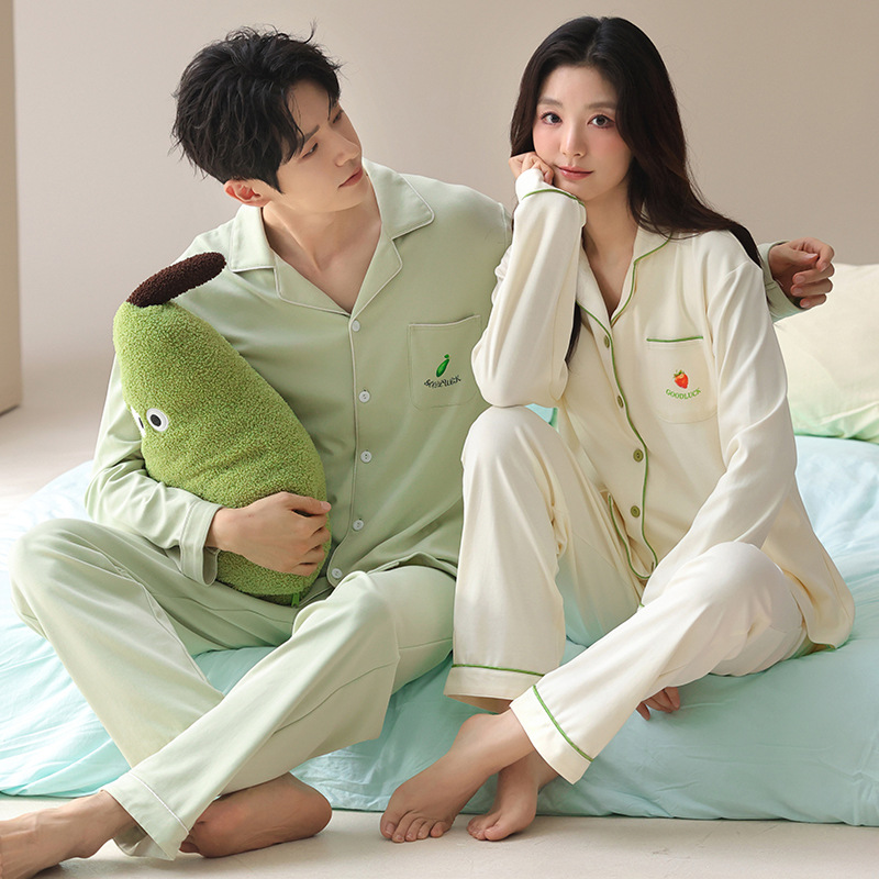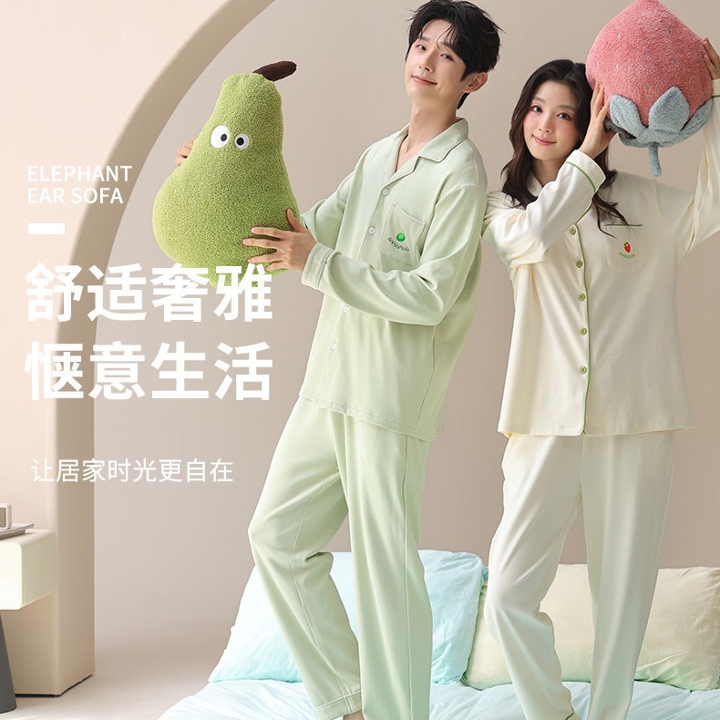 Главная страница > Новые парные пижамы для женщин, осенний кардиган из чистого хлопка, высококачественный домашний комплект для женщин, удобная мужская верхняя одежда для весны и осени.