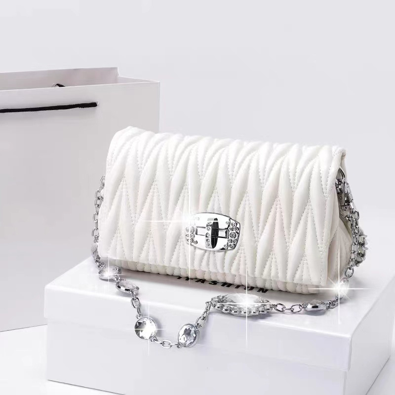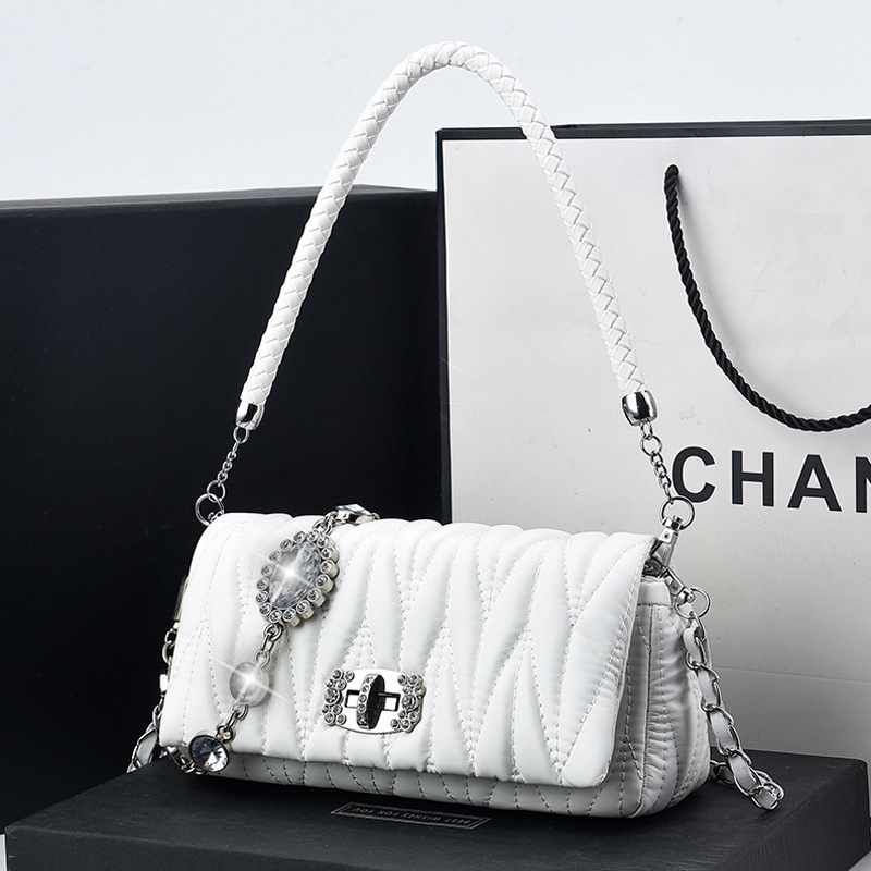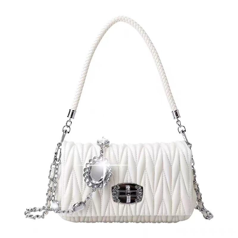 Главная страница > Сумки для женщин, новинка 2023, модная универсальная мягкая кожаная сумка-фея, сумка-цепочка со стразами, сумка через плечо на одно плечо, плиссированная сумка