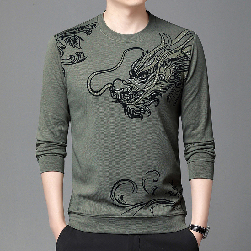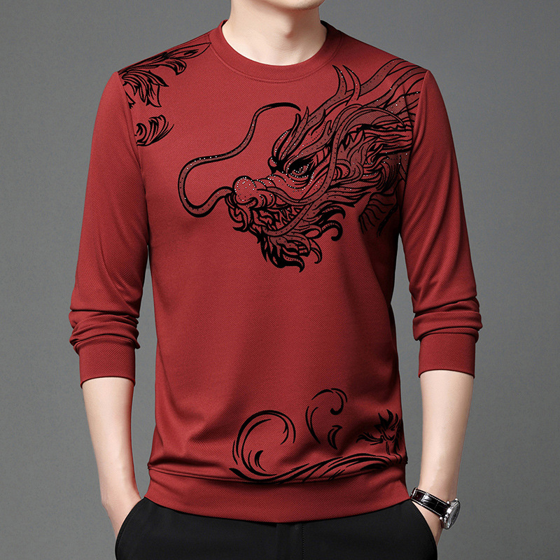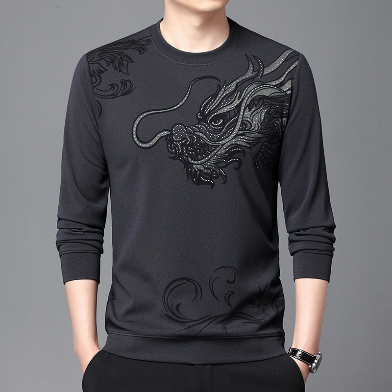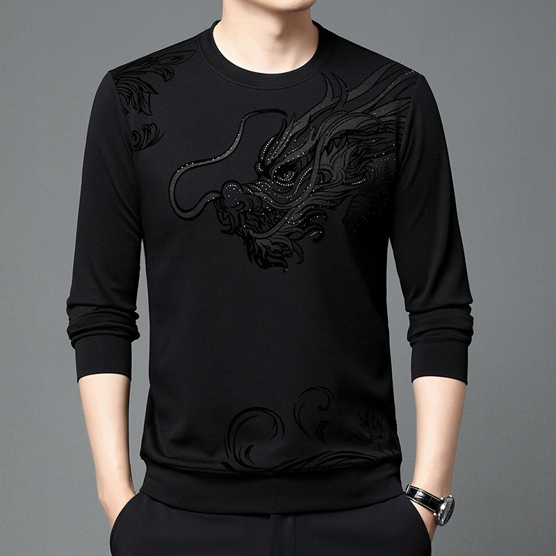 Главная страница > Весна и осень Новый свитер мужской с круглым вырезом Флокированная Повседневная футболка мужская мода Модная весна молодых и средних лет с длинным рукавом для мужчин