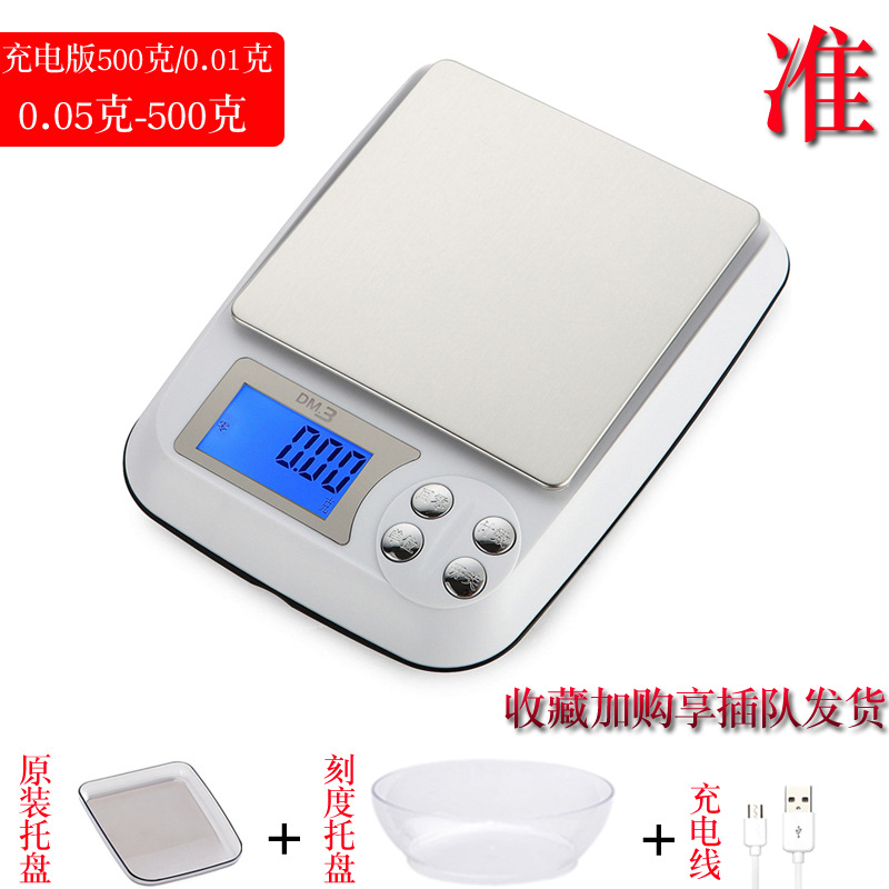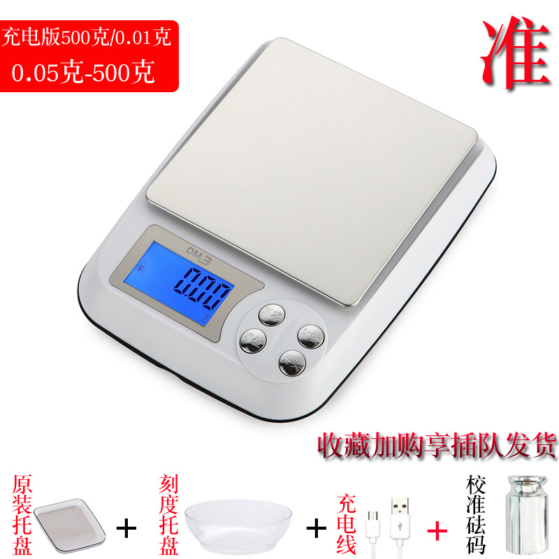 Перезаряжаемая версия 500 г/0,01 г+лоток+масштабная чаша+вес