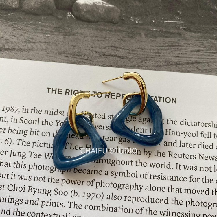 Южная Корея Dongdaemun Design Sense ниша винтажные Акриловые Матовые индивидуальные темперамент минималистичные серьги для женщин