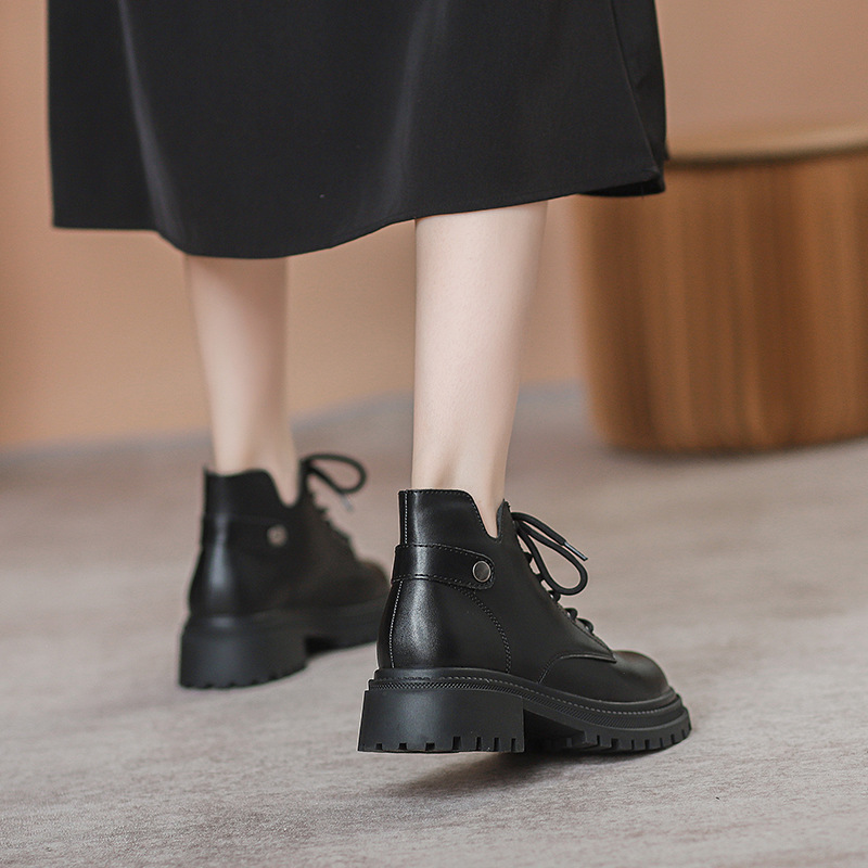 Главная страница > Женские ботинки Мартин на толстой подошве, новинка осени-зимы 2025, с круглым носком, в британском стиле, модные короткие ботинки, тренд Ins, в наличии