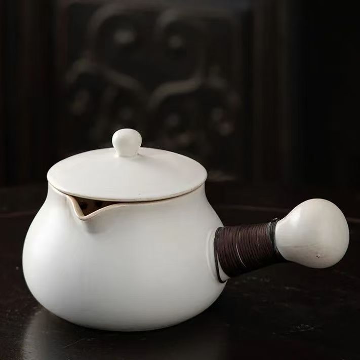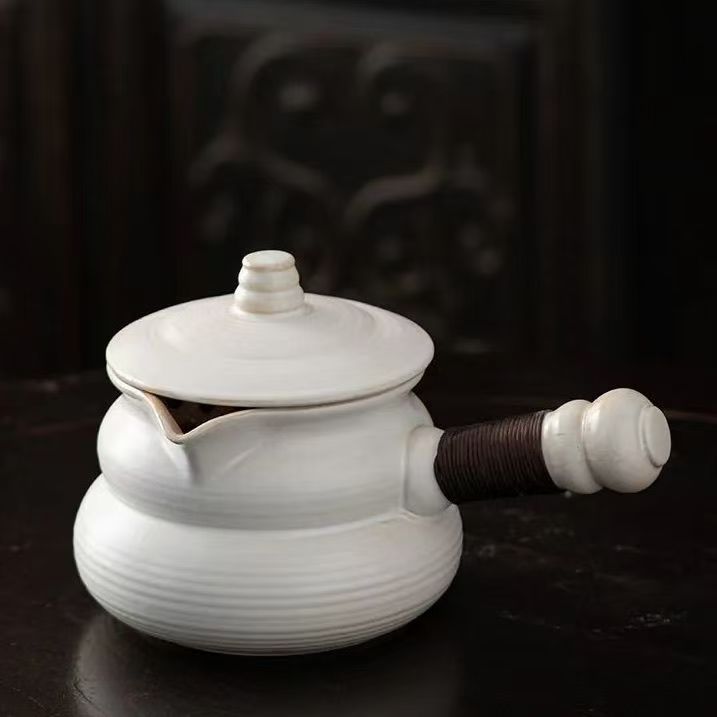 Горшок с белой боковой ручкой в древнем стиле, 500 мл.