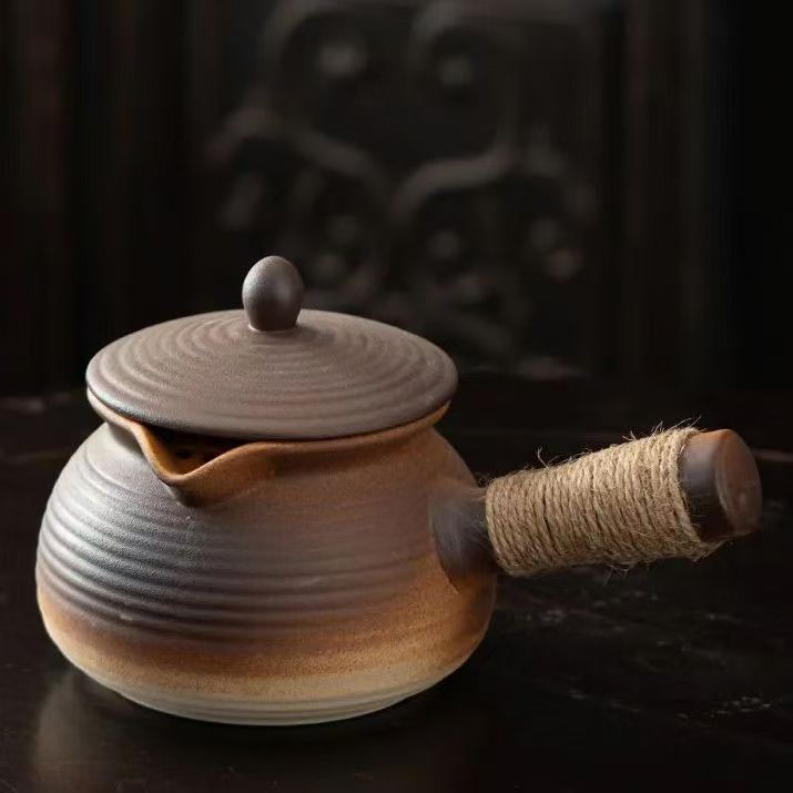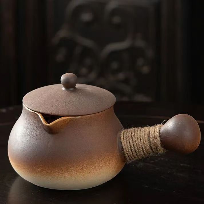 Коричневый чайник с круглой ручкой и боковой ручкой 650 мл (можно сушить)