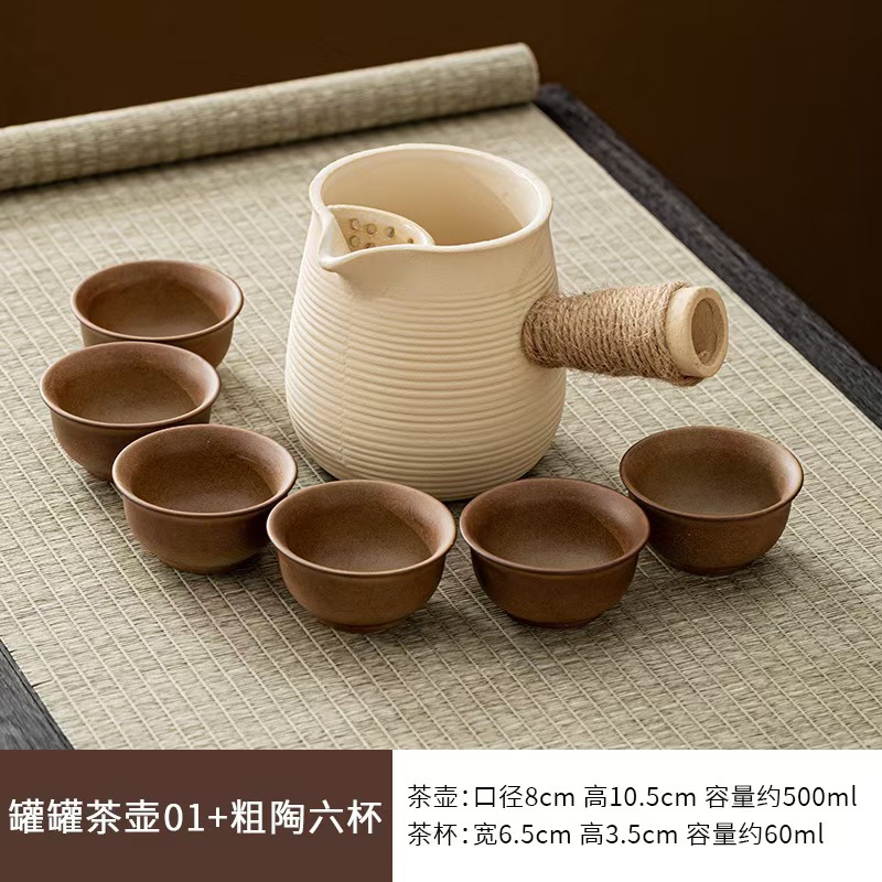 Горшок с боковой ручкой цвета кофе Moon Ru 500 мл + 6 чашек