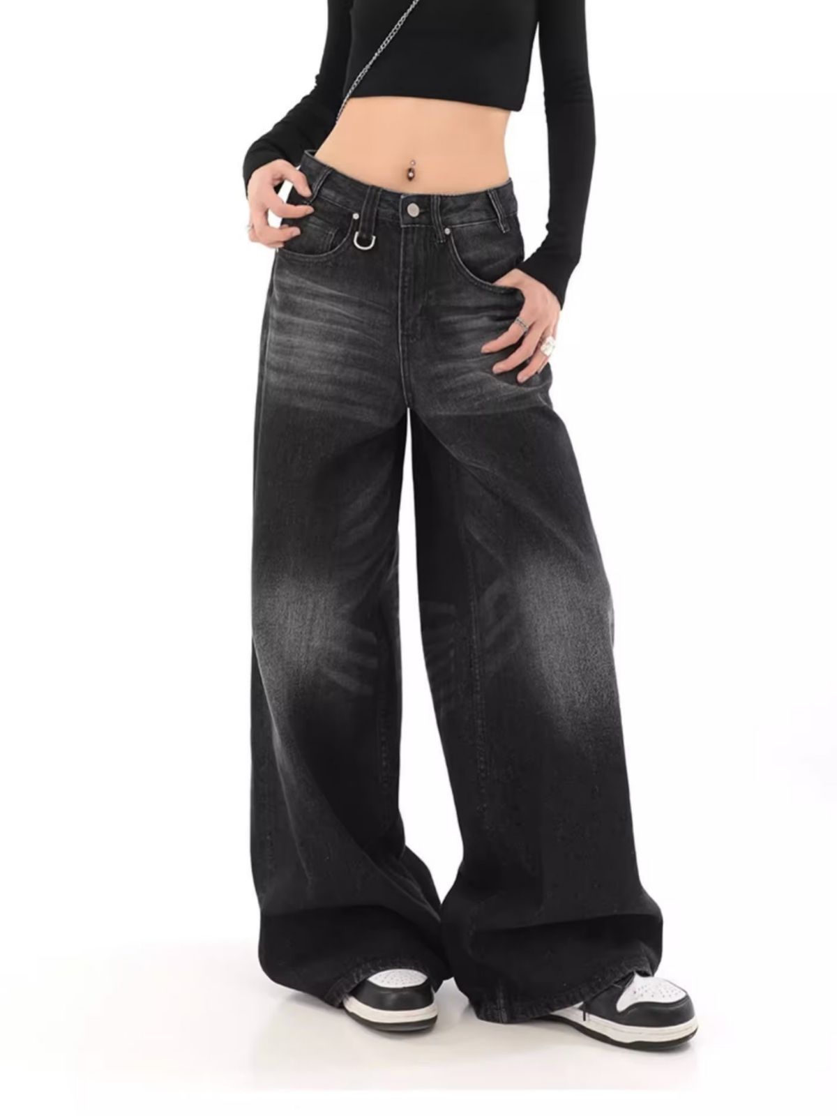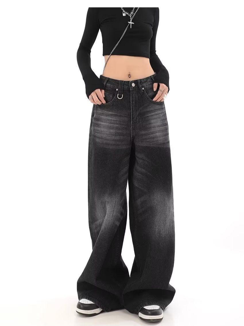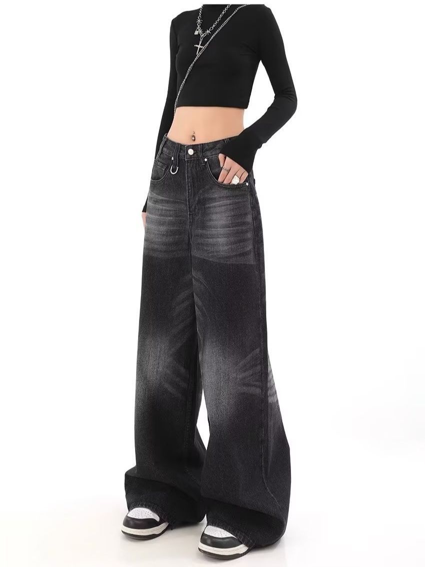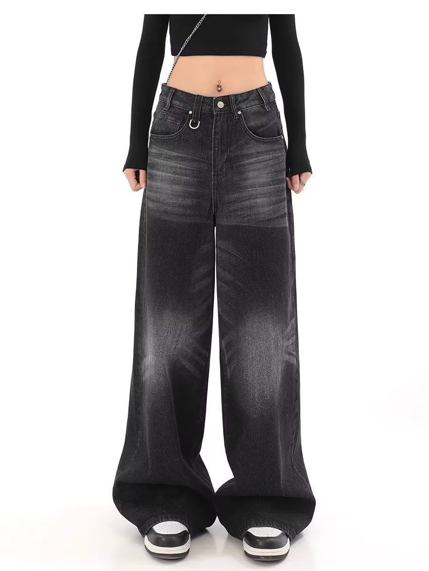 Главная страница > Винтажные Выбеленные старые черные широкие джинсы женские осенние новые свободные прямые модные длинные брюки с высокой талией