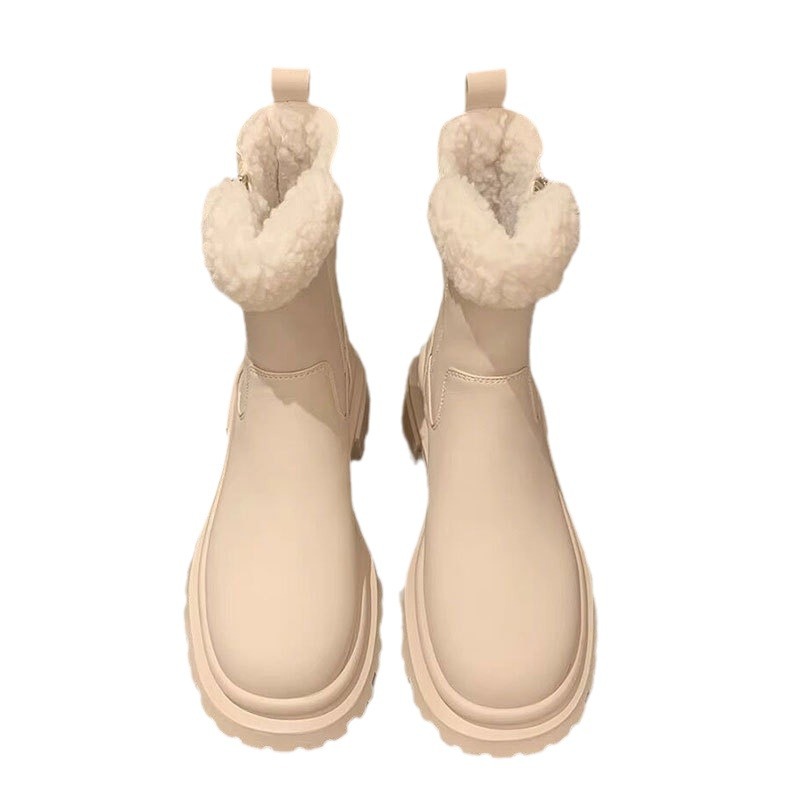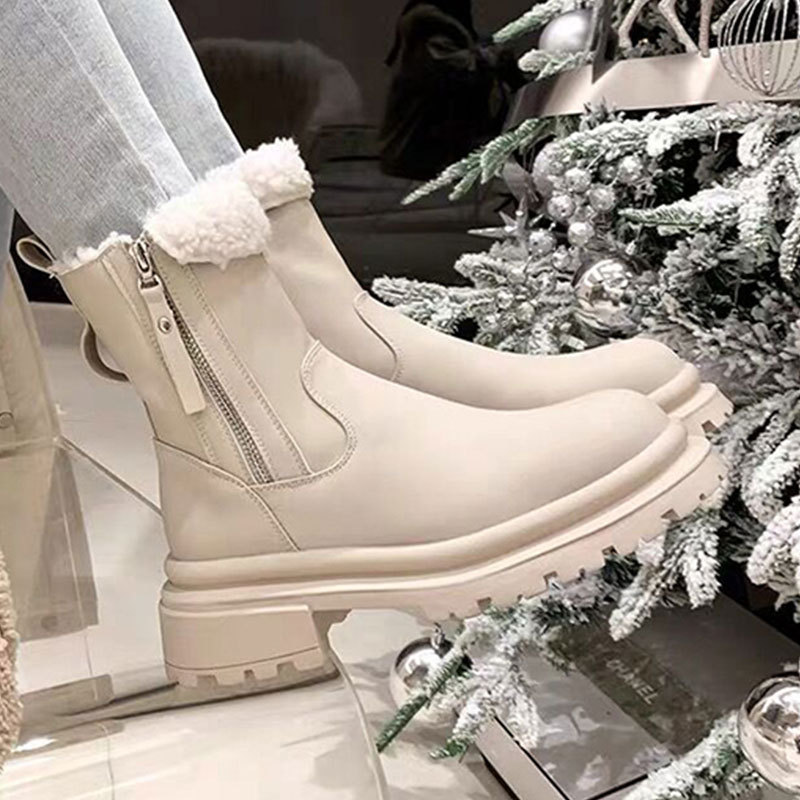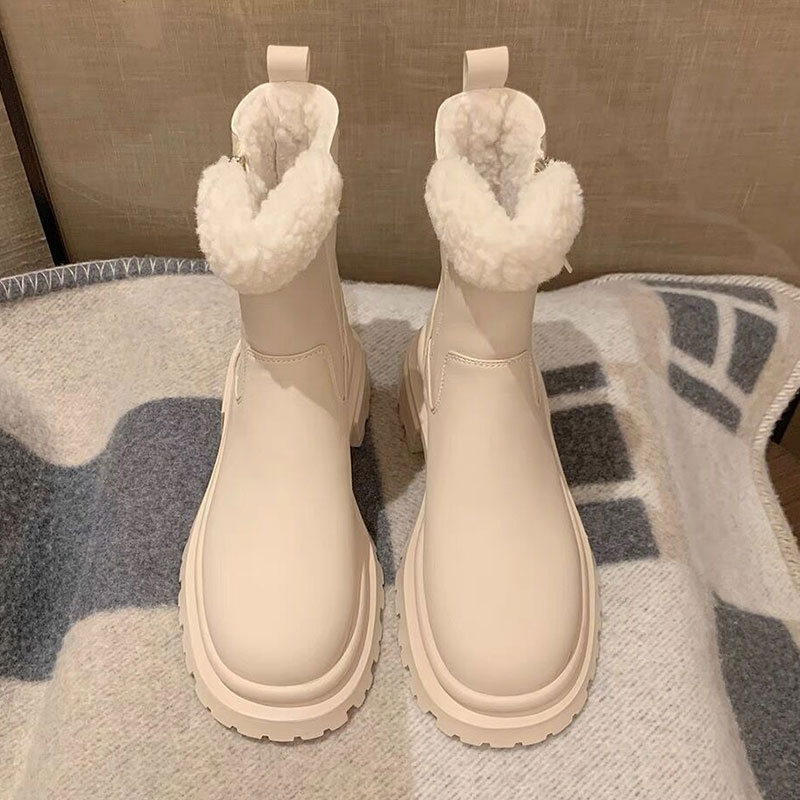 Главная страница > Белые зимние сапоги, женские меховые сапоги One 2023, новые зимние утолщенные короткие сапоги Martin с толстой подошвой на флисовой подкладке средней длины, хлопчатобумажная обувь