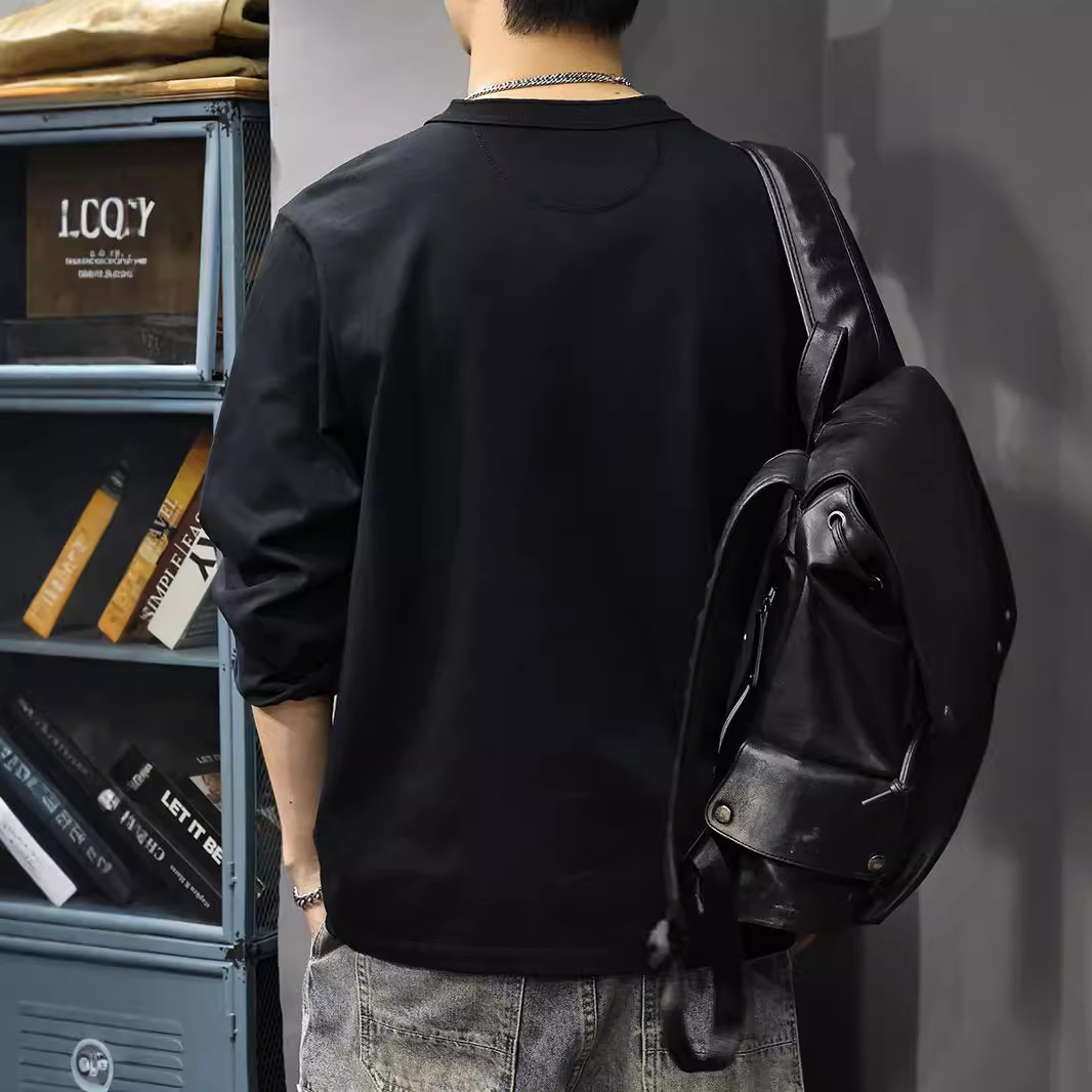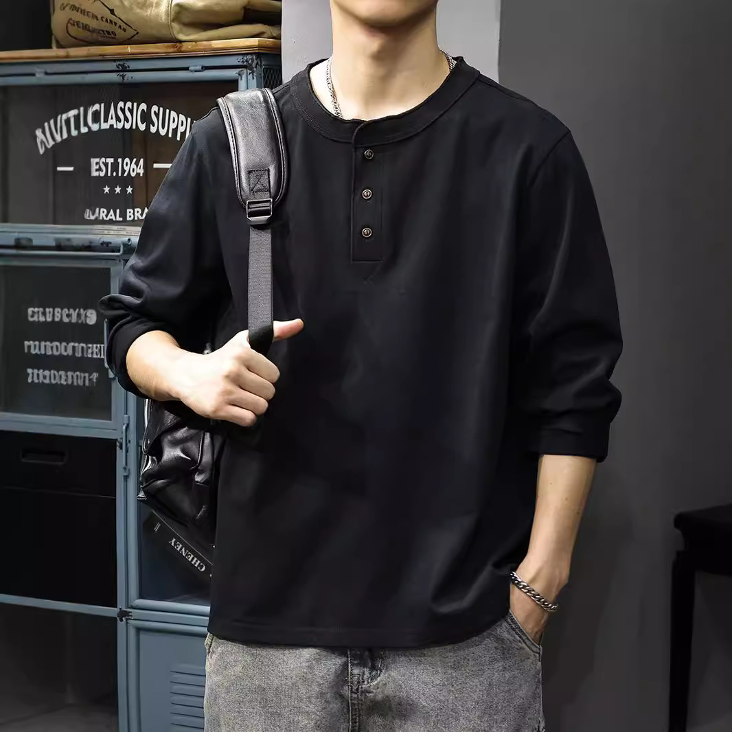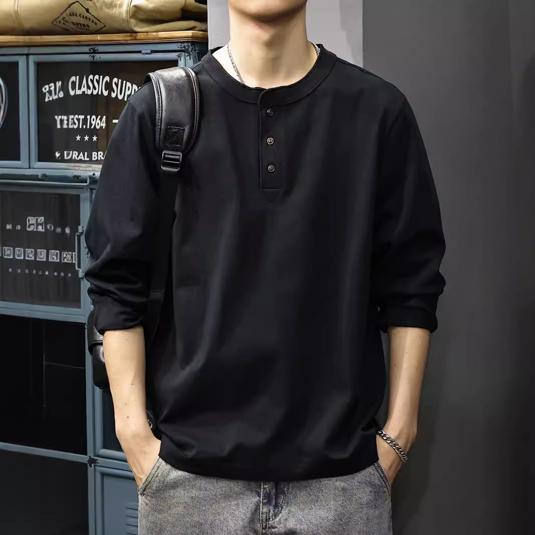 Главная страница > Осенний американский ретро Генри воротник мужская футболка с длинным рукавом