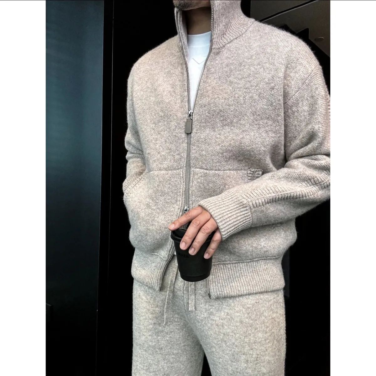 Главная страница > Осенне-зимняя новая повседневная толстая вязаная куртка с двойной молнией и воротником-стойкой, мужской модный мягкий теплый свитер