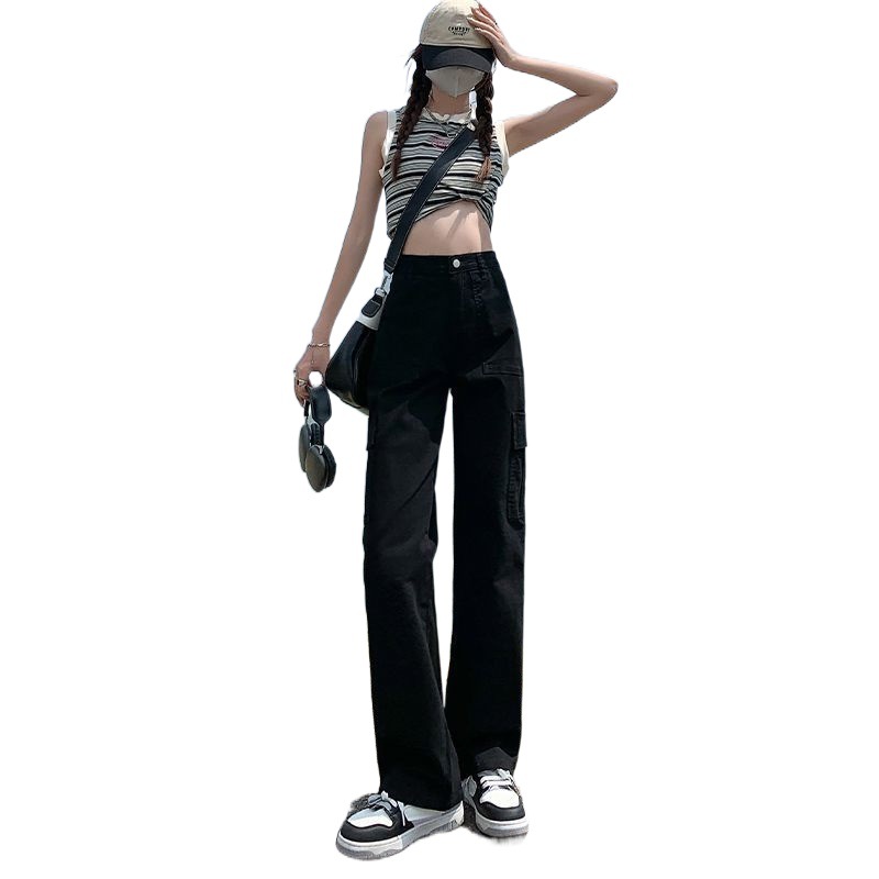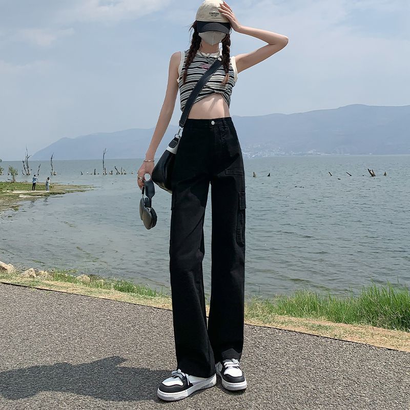 Главная страница > Хаки с высокой талией узкая версия комбинезонов женские летние американские ретро высокие улицы тонкие повседневные широкие джинсы