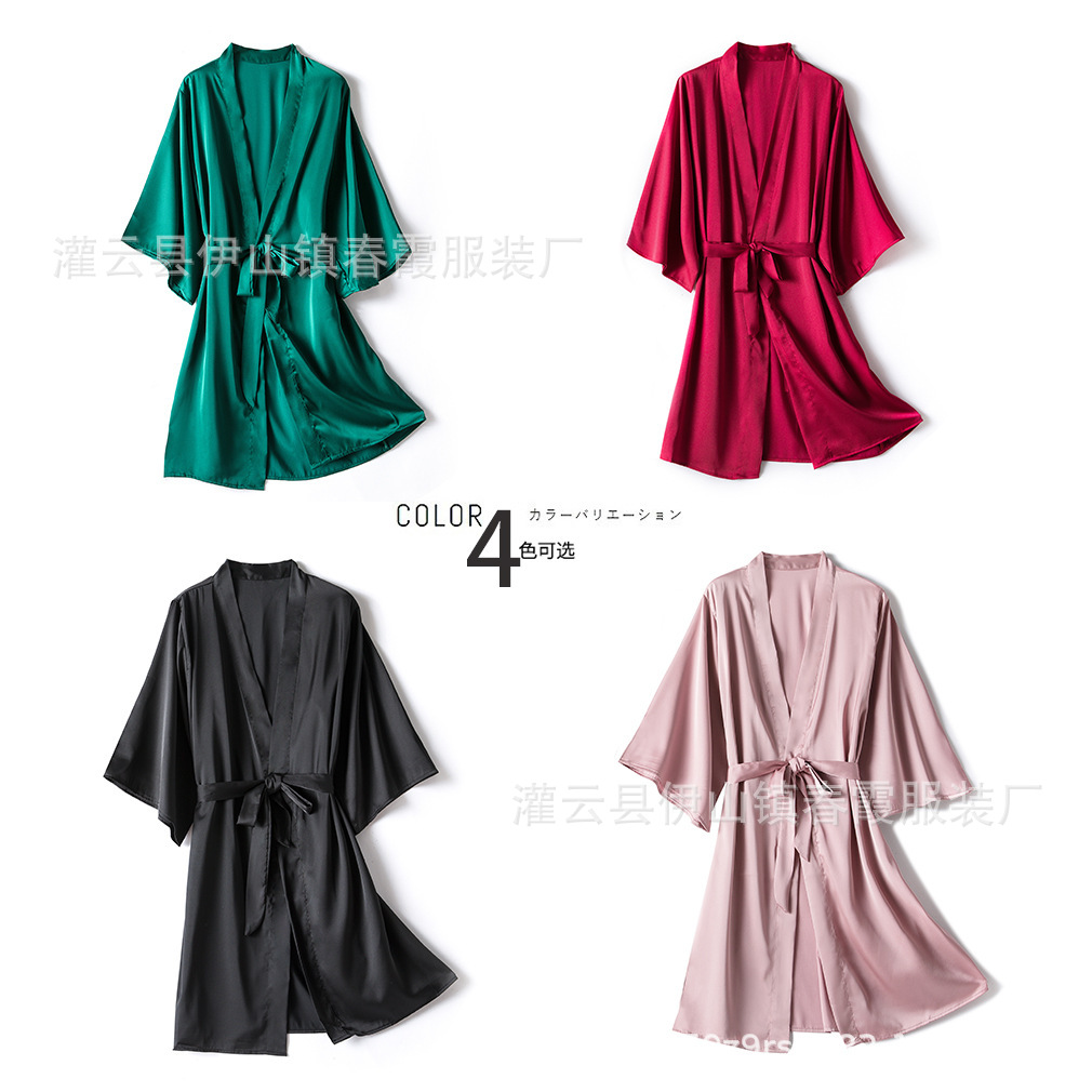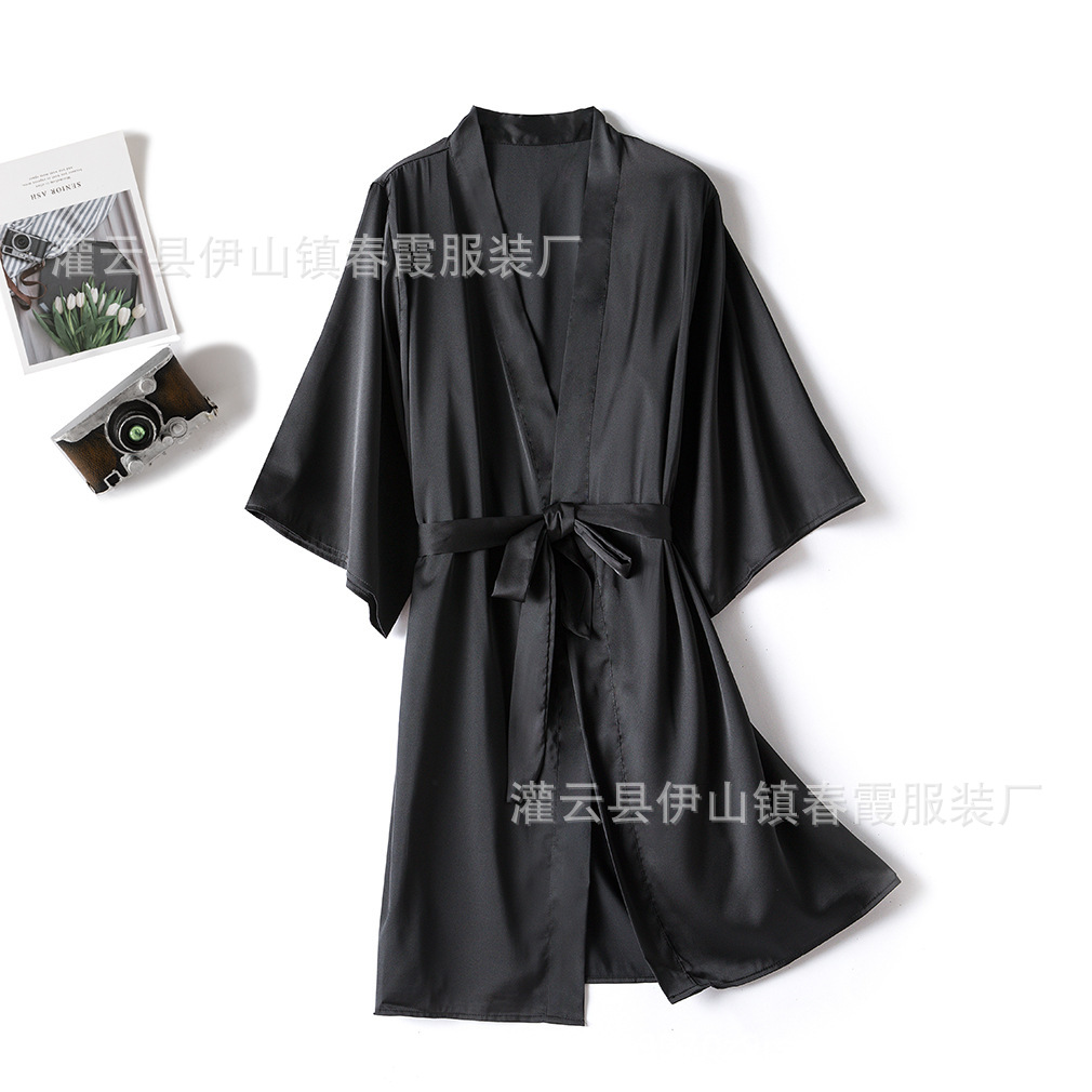 Трансграничная эластичная атласная пижама, женская ночная рубашка, халат, цельный халат, верхний халат средней длины, черный сексуальный халат из искусственного шелка