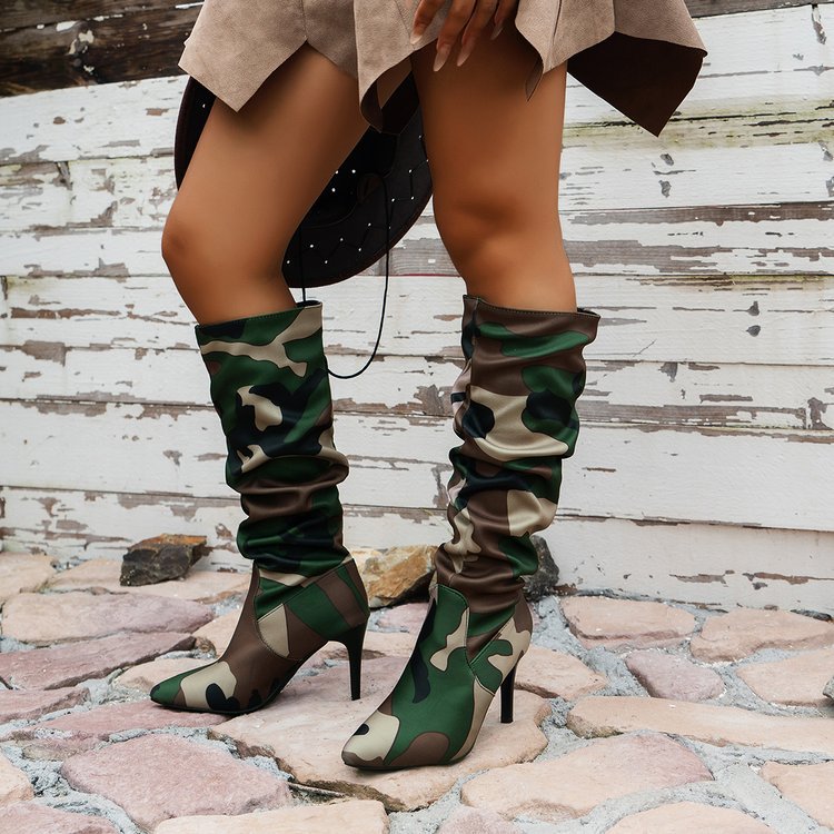 Главная страница > Европейская и американская внешняя торговля, трансграничные осенне-зимние женские ботинки, независимые камуфляжные высокие сапоги на шпильке, ботинки на подкладке