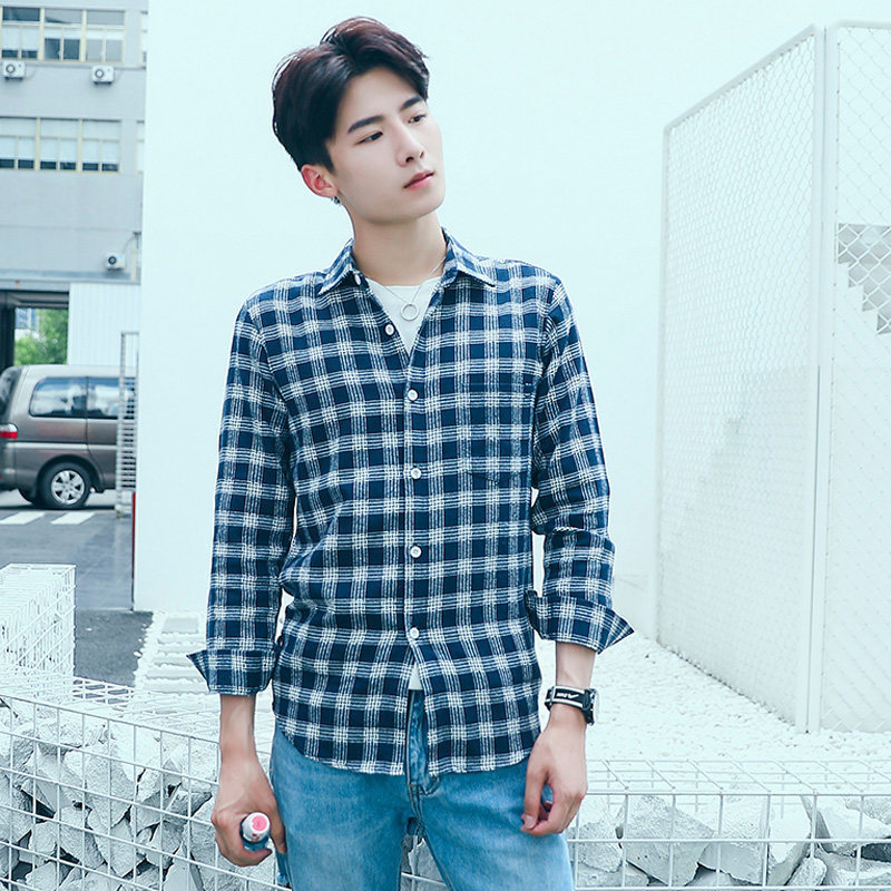 Главная страница > Оптовые клетчатые рубашки с длинными рукавами для мужчин, корейский стиль, облегающие молодежные модные красивые рубашки для пар, повседневные тонкие рубашки