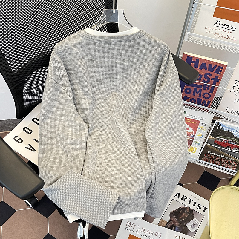 Весенние и осенние вафли поддельные две футболки с длинными рукавами мужской cleanfit бренд минималистичный ретро повседневный свободный топ