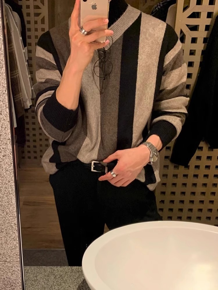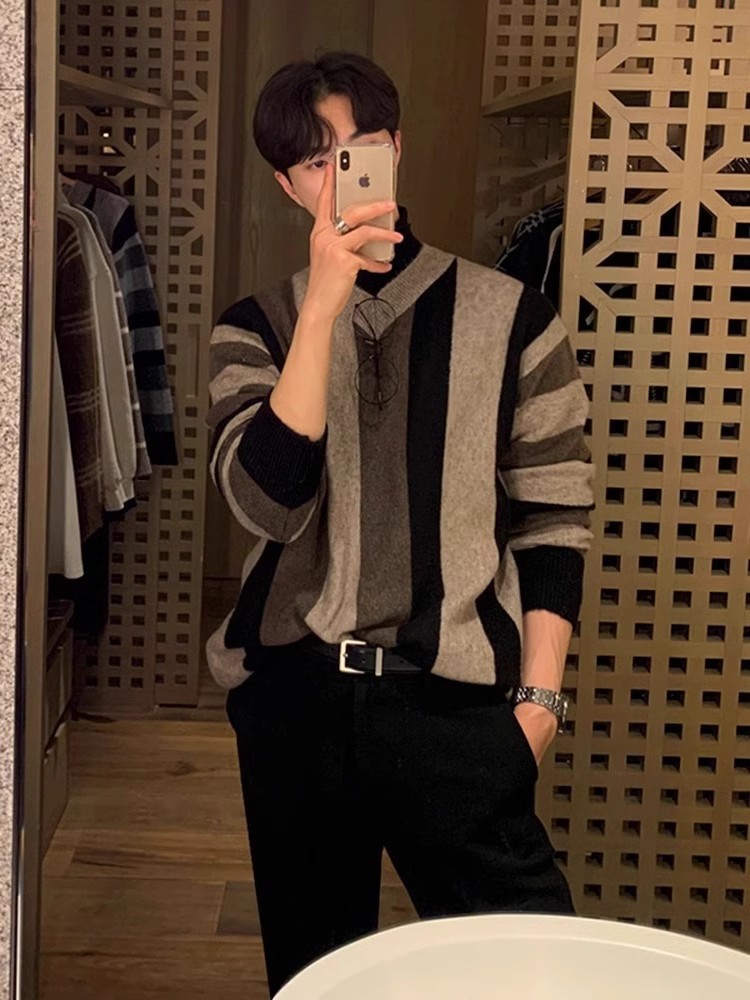 Главная страница > Осенний и зимний корейский ленивый ветер вертикальный V-образный V-образный легкий роскошный ветер вязаный свитер мужской свободный повседневный