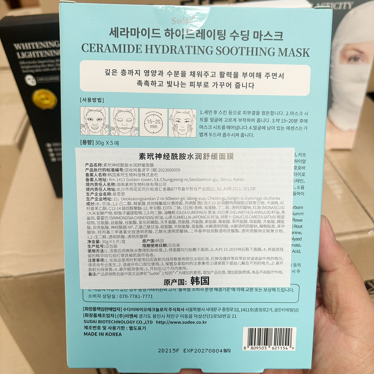 [Строгий выбор] Корейская импортная маска Su Dai, укрепляющая, восстанавливающая, отбеливающая маска от пятен, увлажняющая, успокаивающая, эластичная, укрепляющая