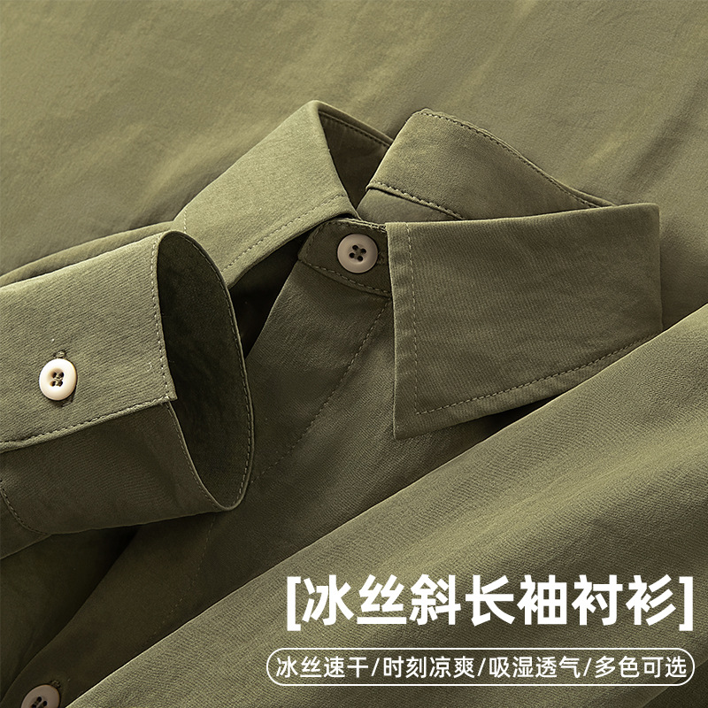 Летняя мужская рубашка из ледяного шелка с длинными рукавами, свободный и драпирующийся топ с открытыми плечами, дышащая тонкая рубашка-куртка, которую можно носить на улице.