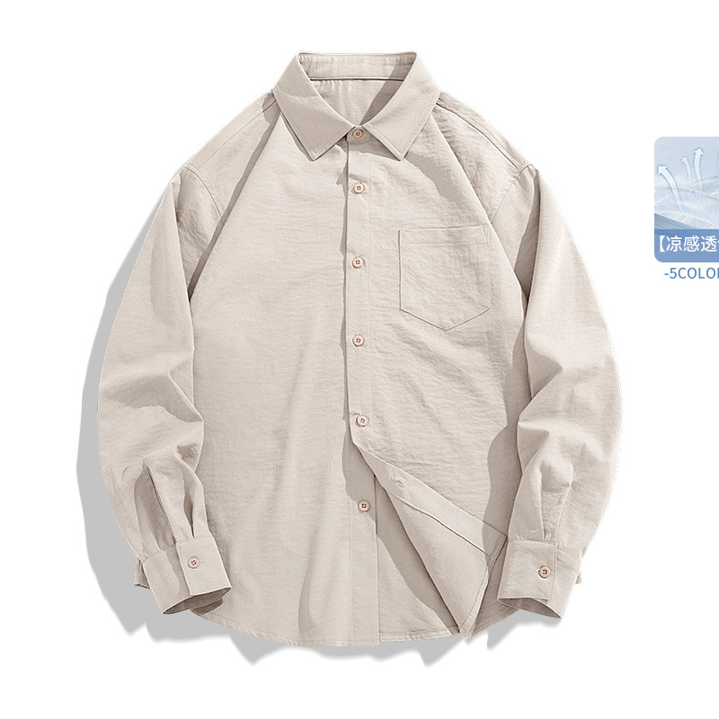 Главная страница > Летняя мужская рубашка из ледяного шелка с длинными рукавами, свободный и драпирующийся топ с открытыми плечами, дышащая тонкая рубашка-куртка, которую можно носить на улице.
