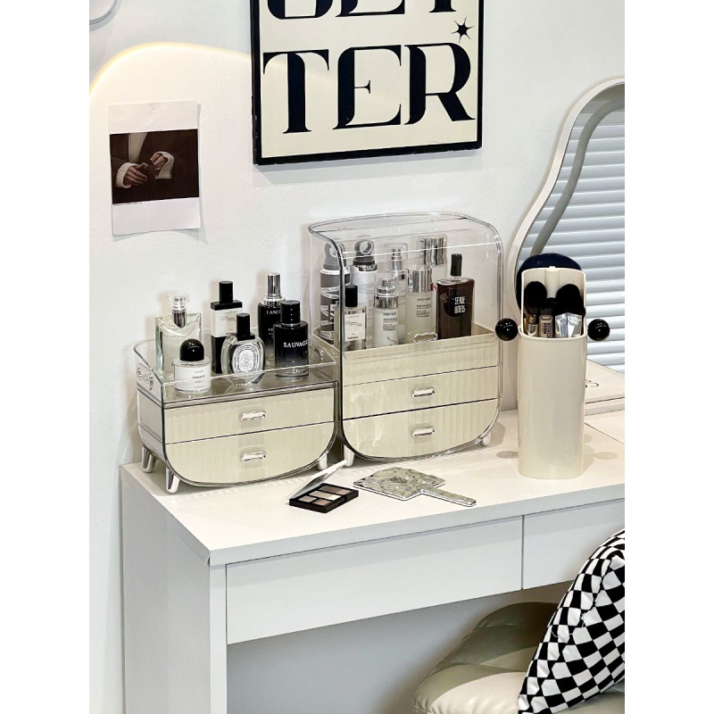 【Рекомендуемый стиль изображения】【Пылезащитный и увеличенный】Коробка для хранения косметики — вмещает высокие бутылки ★