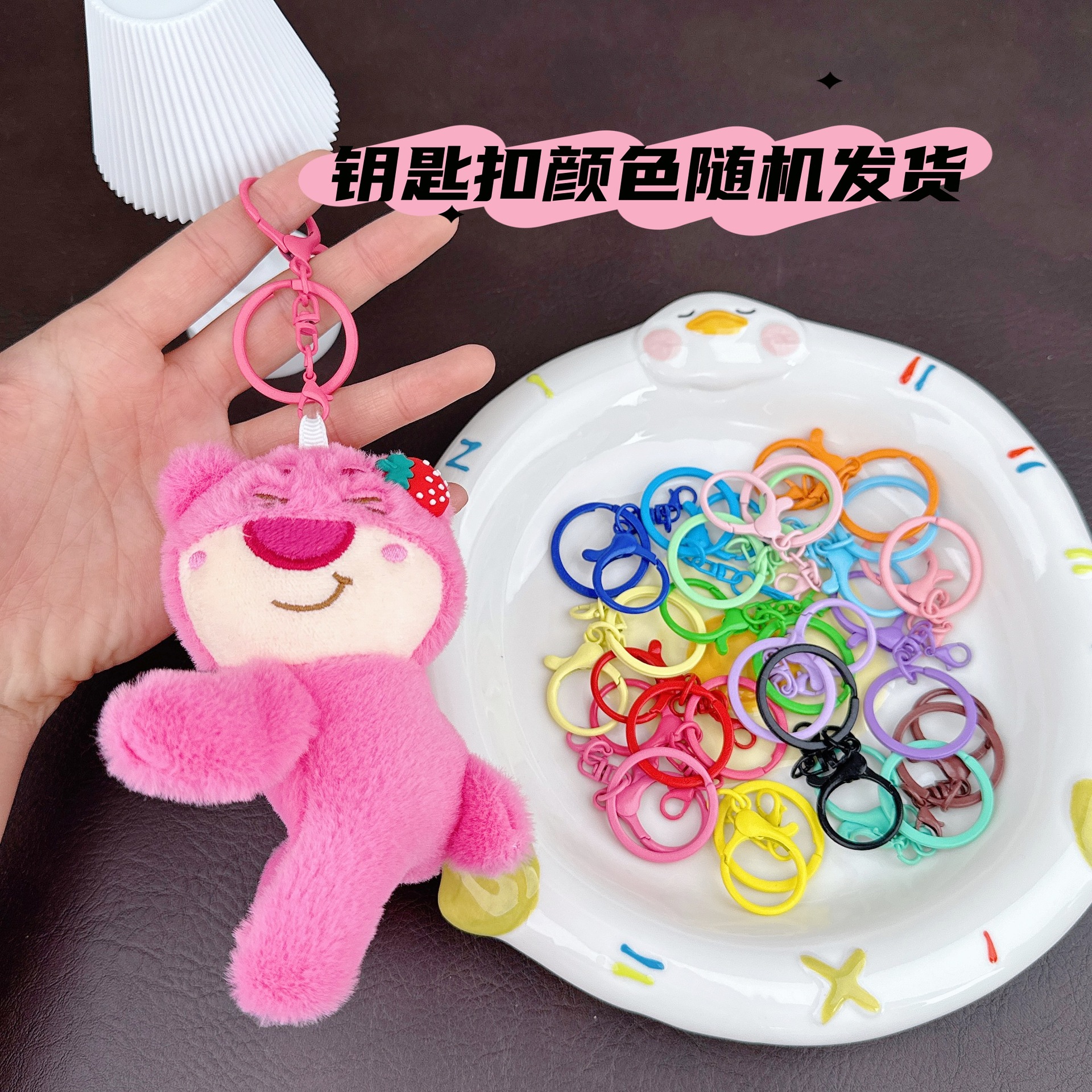 Сидящий клубничный медведь + брелок случайного цвета