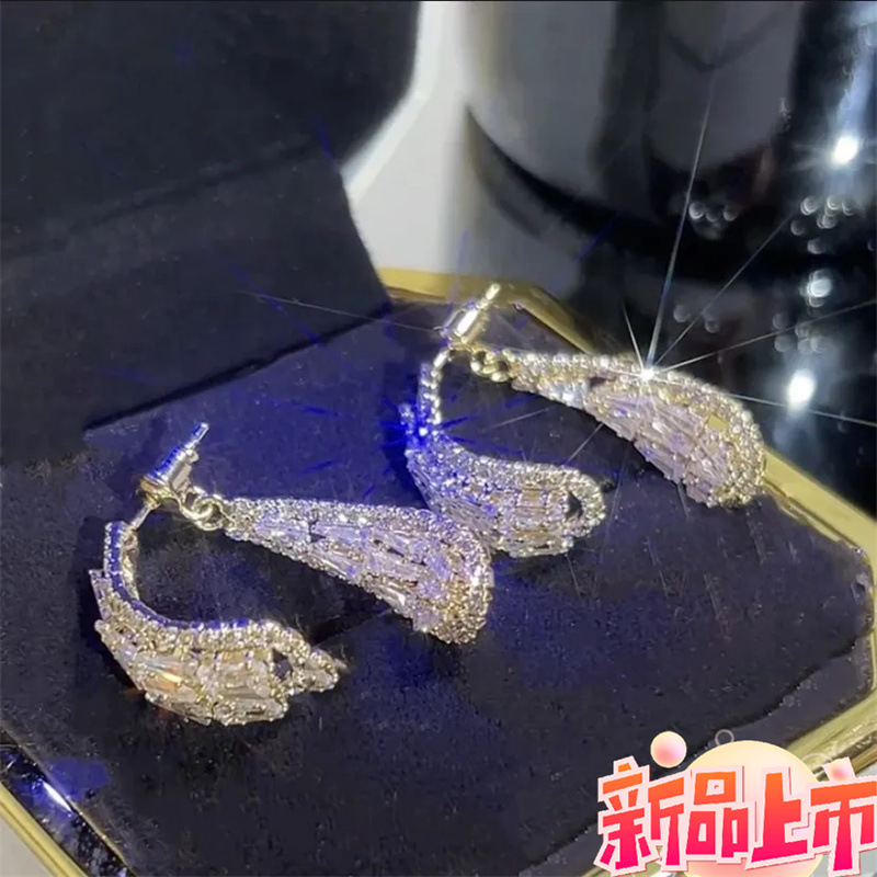 2024 роскошный циркон передняя и задняя поперечная дуга капли воды серьги женщины высокого уровня изысканный дикий модный темперамент индивидуальность