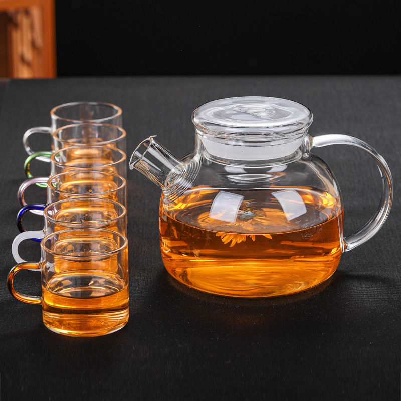 Главная страница > Утолщенный стеклянный чайник для воды, устойчивый к высоким температурам, для приготовления чая, взрывозащищенный из боросиликатного стекла, большой емкости, бытовой набор для фруктов, чайный набор