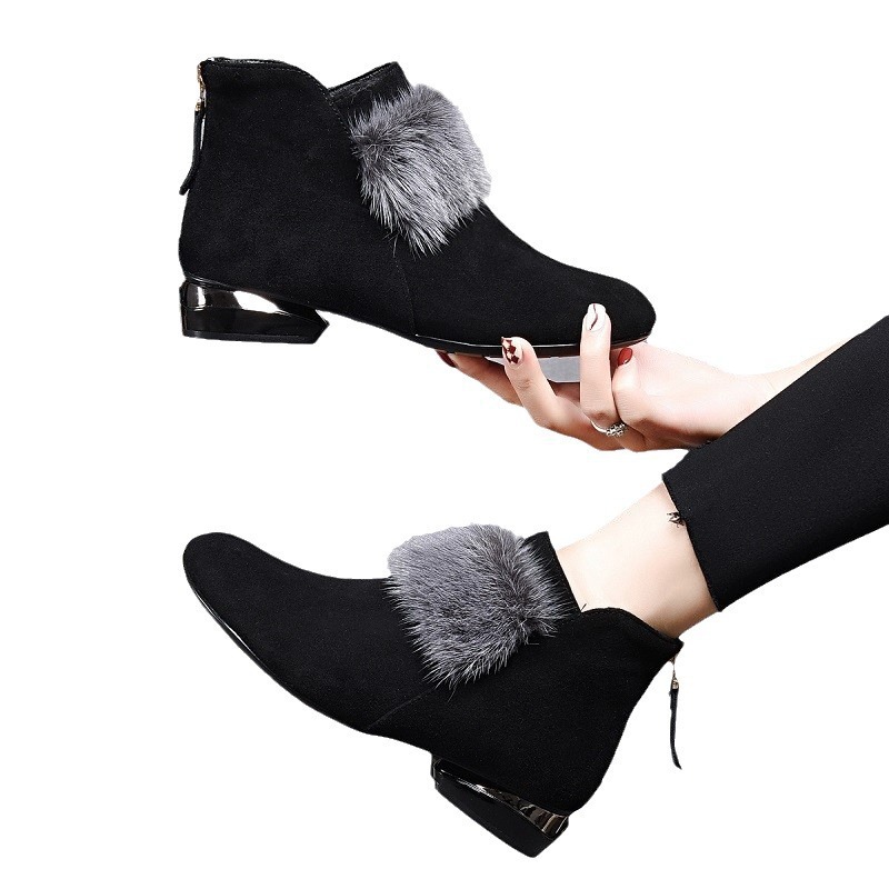 Главная страница > Короткие ботинки из мягкой кожи с матовым покрытием, круглый носок, средний каблук, на флисовой подкладке, осенние и зимние хлопковые ботинки с низким берцем, элегантные женские туфли на низком меху на низком каблуке.