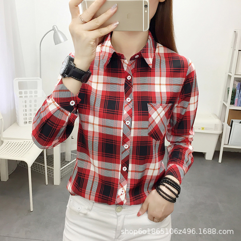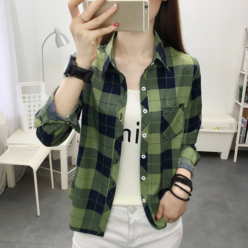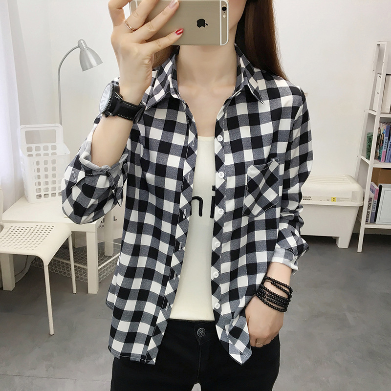 Главная страница > Клетчатая рубашка женская длинная рукава новая корейская версия ретро-гонконгская нижняя рубашка большой размер весна и осень повседневная одиночная куртка