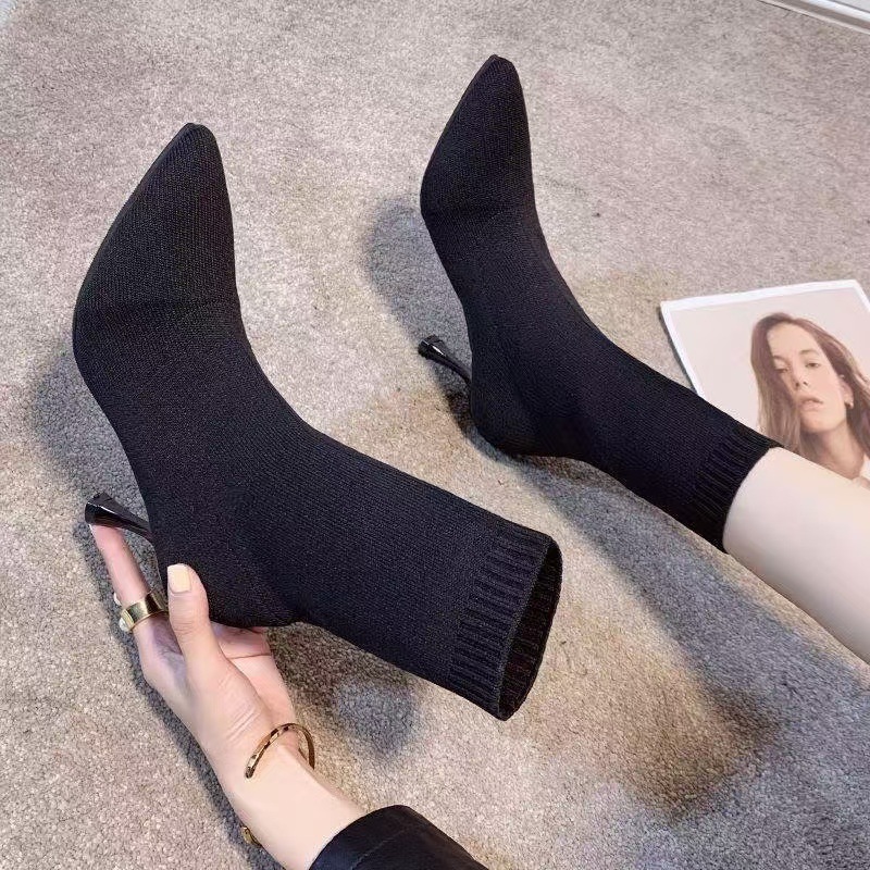 Главная страница > Ботинки Мартин на высоком каблуке, эластичные ботинки-носковые, новинка осени и зимы 2025 года, узкие ботинки до середины икры, женские короткие ботинки с заостренным носком и тонким каблуком.