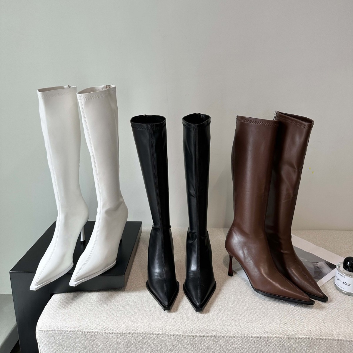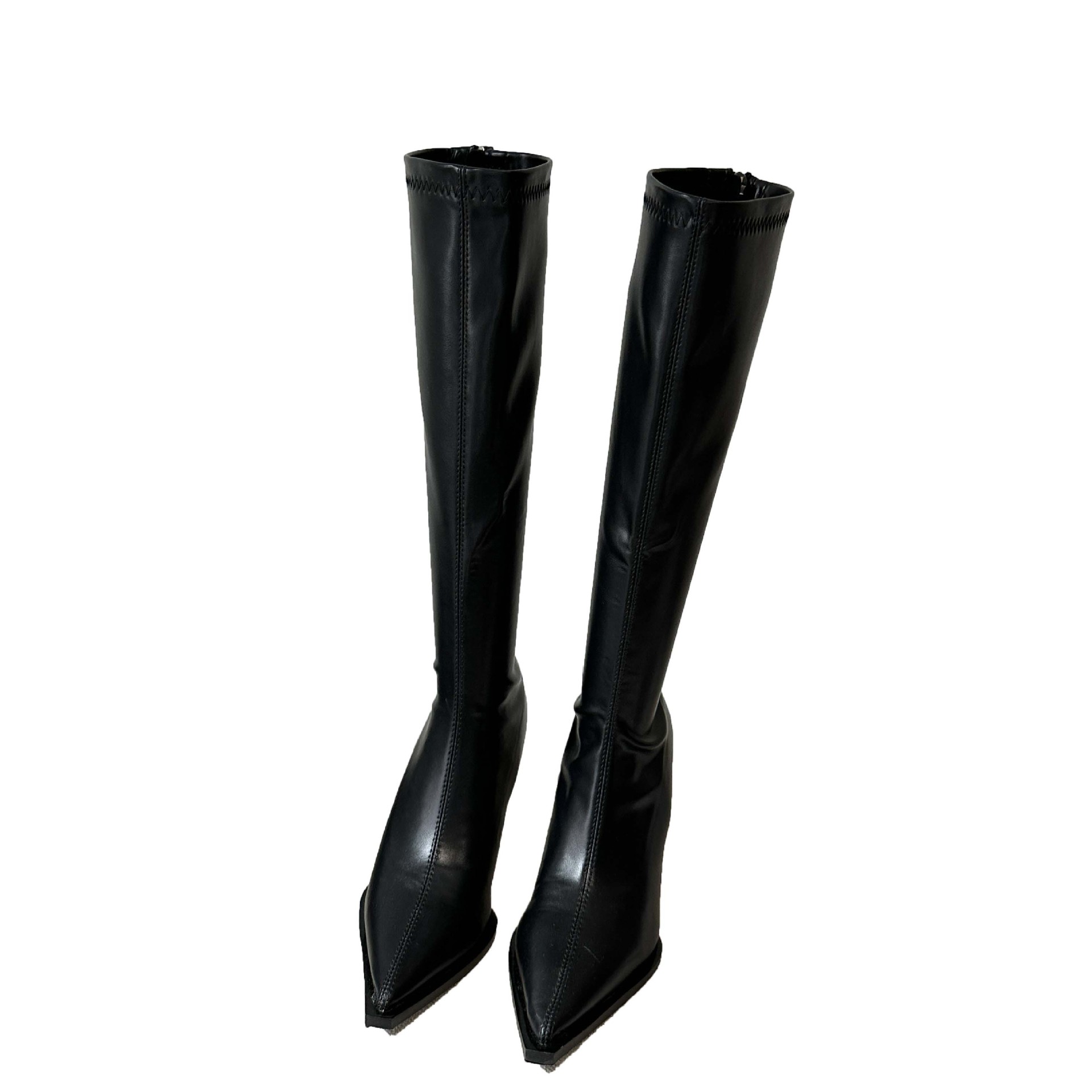 Главная страница > Женские высокие сапоги-ботфорты в европейском и американском стиле с заостренным носком, модель 2025 года, на шпильке, с молнией сзади, стройнящие.