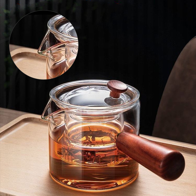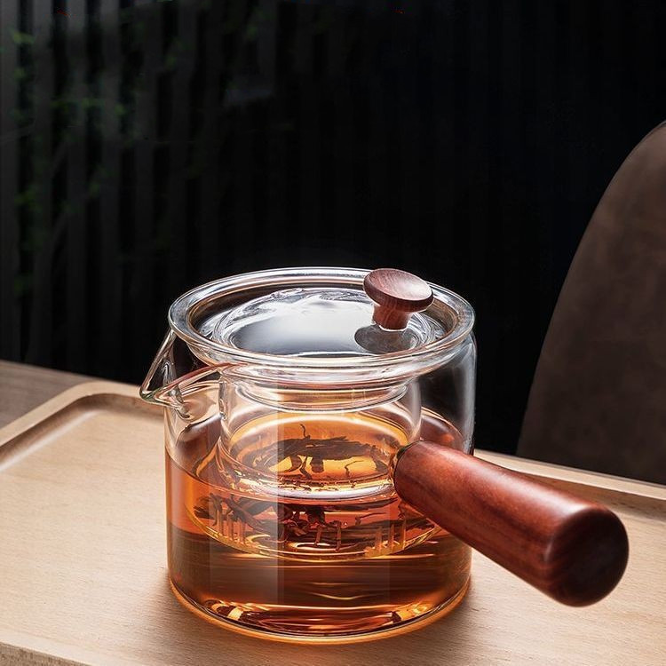 Чайник с боковой ручкой, прозрачный стеклянный фильтр для чайника, сепаратор для чая, горшок с ручной ручкой, утолщенный термостойкий стеклянный одиночный горшок