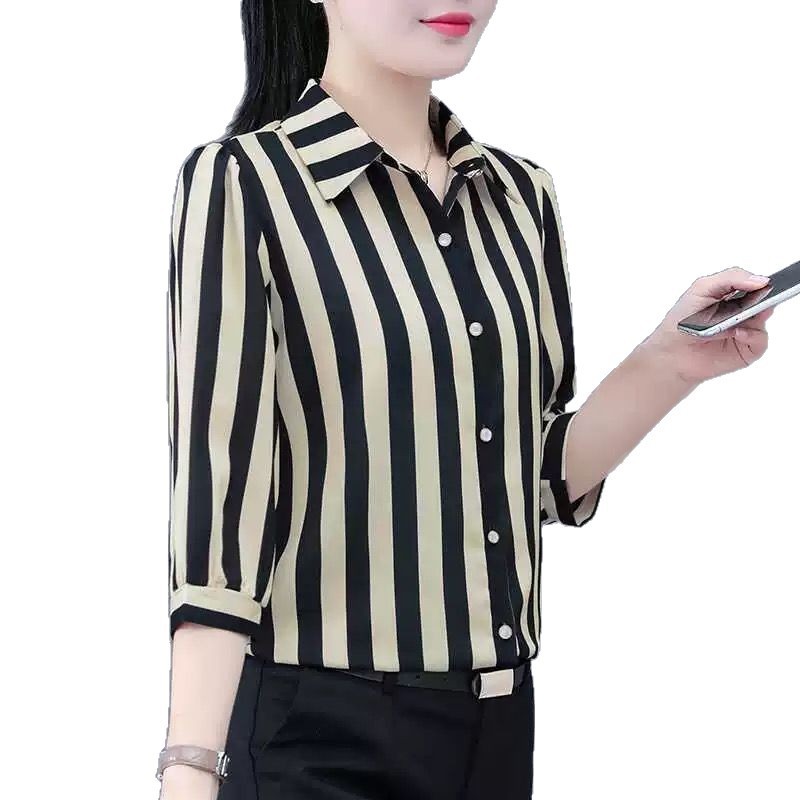 Главная страница > Женская полосатая рубашка с рукавом три четверти, новый летний стиль, свободная и тонкая шифоновая рубашка для мам, темпераментный топ