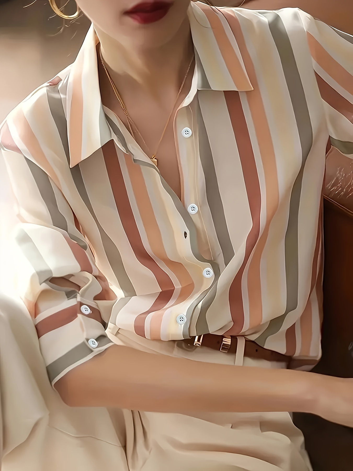 Главная страница > Полосатая рубашка, топы, женская весенняя одежда с длинными рукавами, новинка 2025 года, модная нишевая тонкая рубашка в стиле ретро, женская рубашка во французском стиле