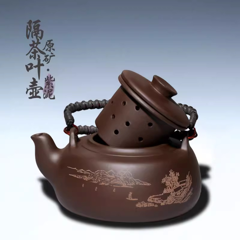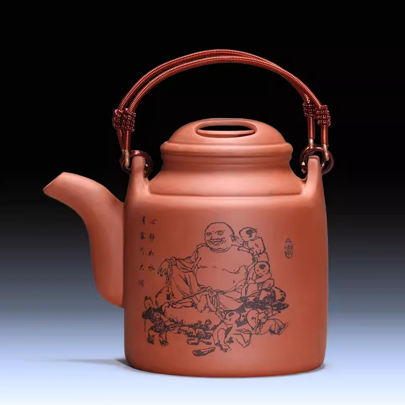 Ручка для чая из фиолетовой глины, резная, 2400 мл