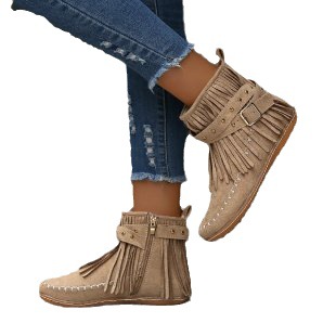 Главная страница > Осенне-зимние Новые короткие сапоги с кисточками, завышенные матовые женские сапоги на плоской подошве, одиночные сапоги для студентов, Повседневная модная универсальная женская обувь