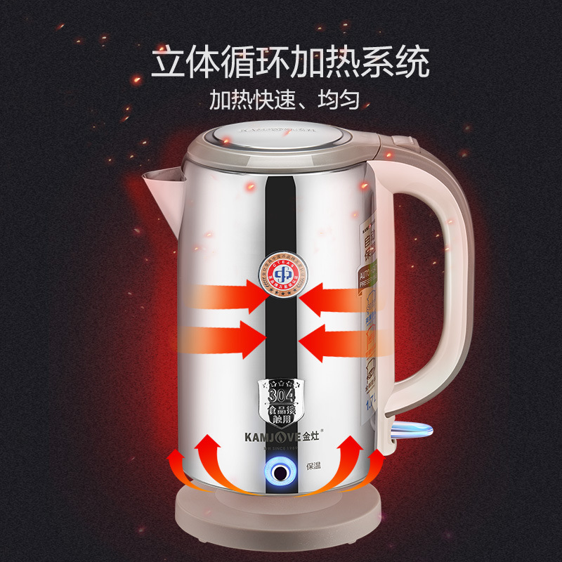 Главная страница > Золотая плита T-917 полностью стальной электрический чайник 304 из нержавеющей стали