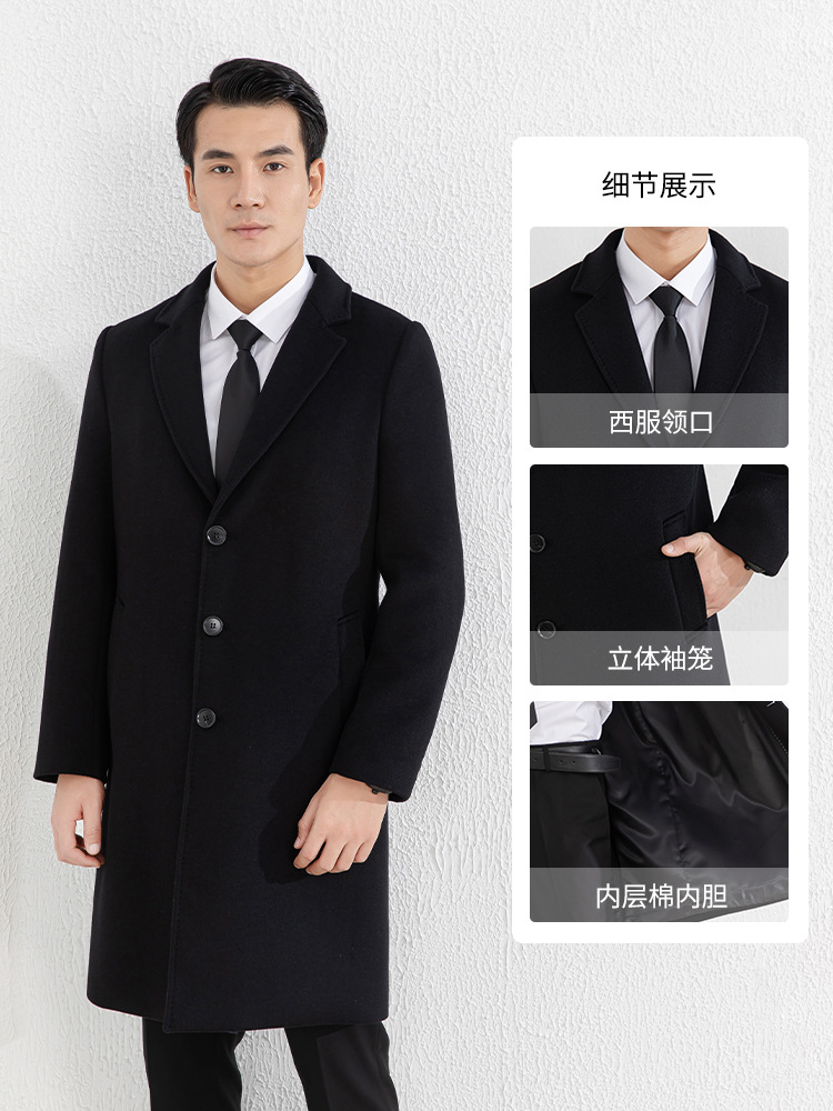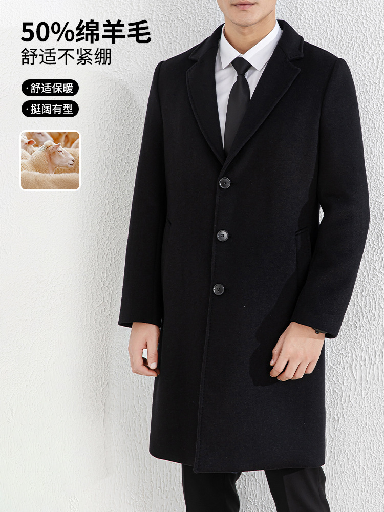 Главная страница > Новое зимнее мужское шерстяное пальто, деловое платье, однобортное шерстяное пальто средней длины с воротником-стойкой
