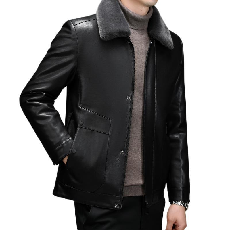 Главная страница > Кожаная одежда мужская зимняя новая мужская куртка среднего возраста плюс бархатная толстая кожаная куртка повседневная кожаная куртка с отворотом