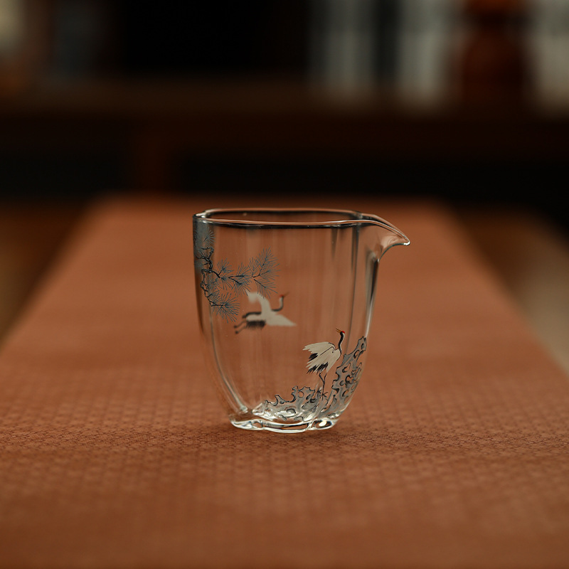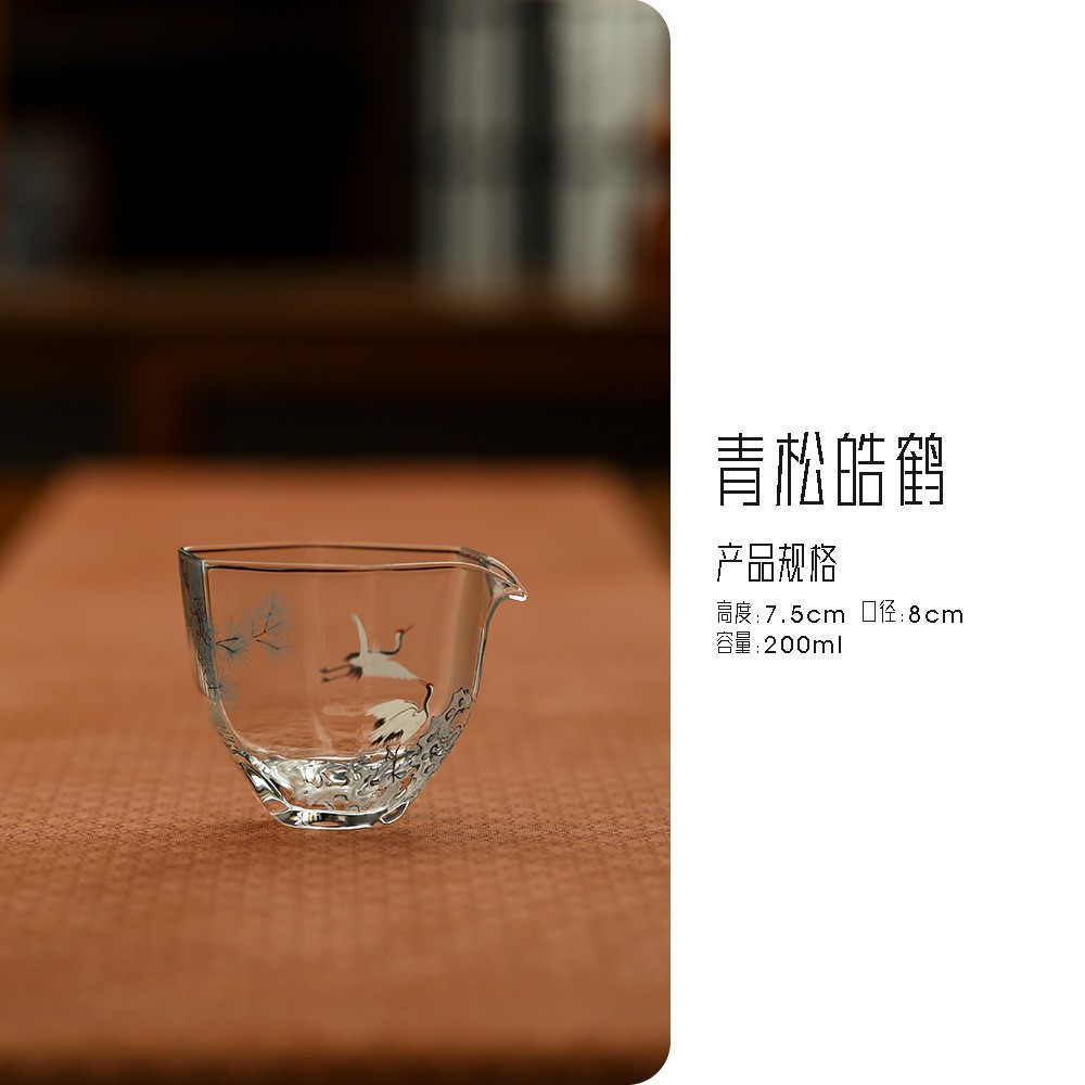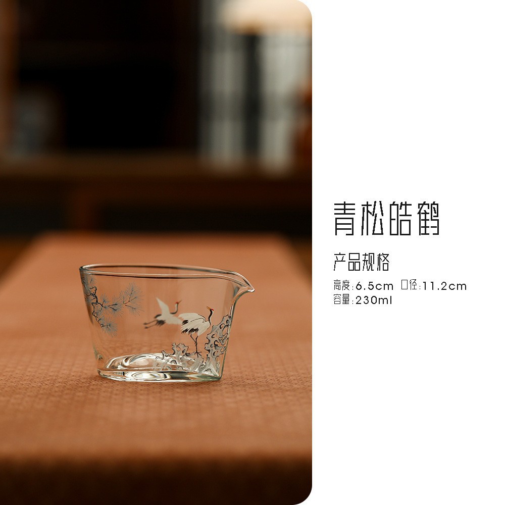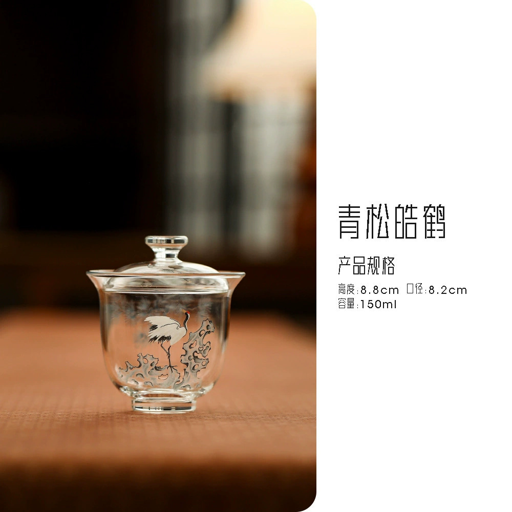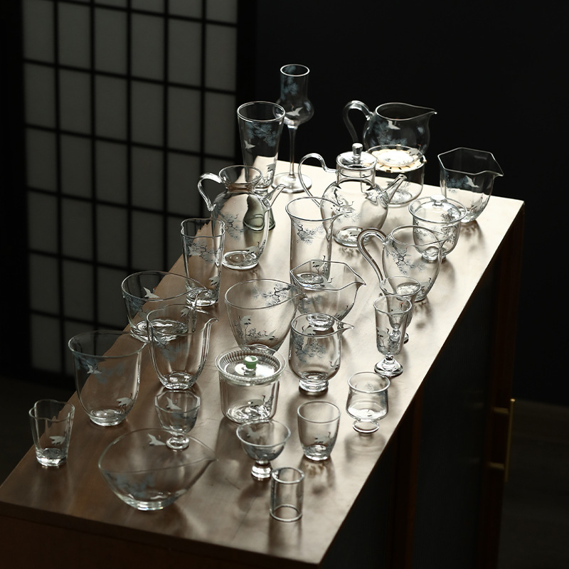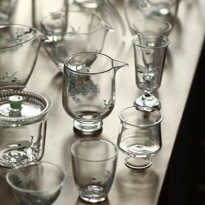 Главная страница > Ручная работа, декорированная сосновым журавлем, чайный набор кунг-фу из высокоборосиликатного стекла: чашка для дегустации, чайник для зеленого чая с двойной крышкой и чашей.