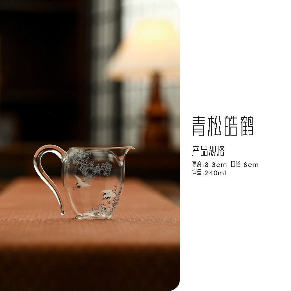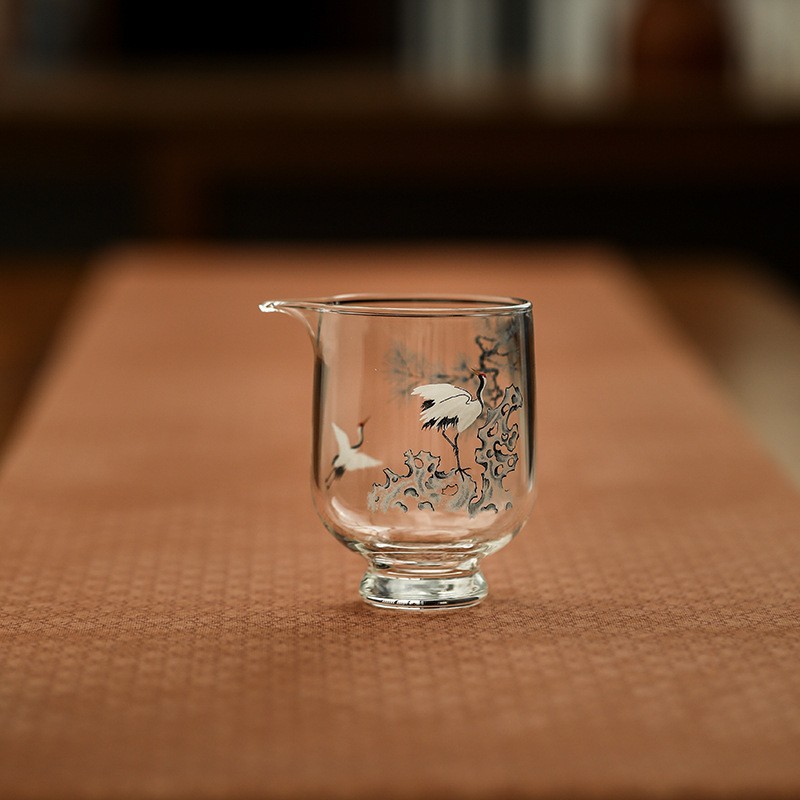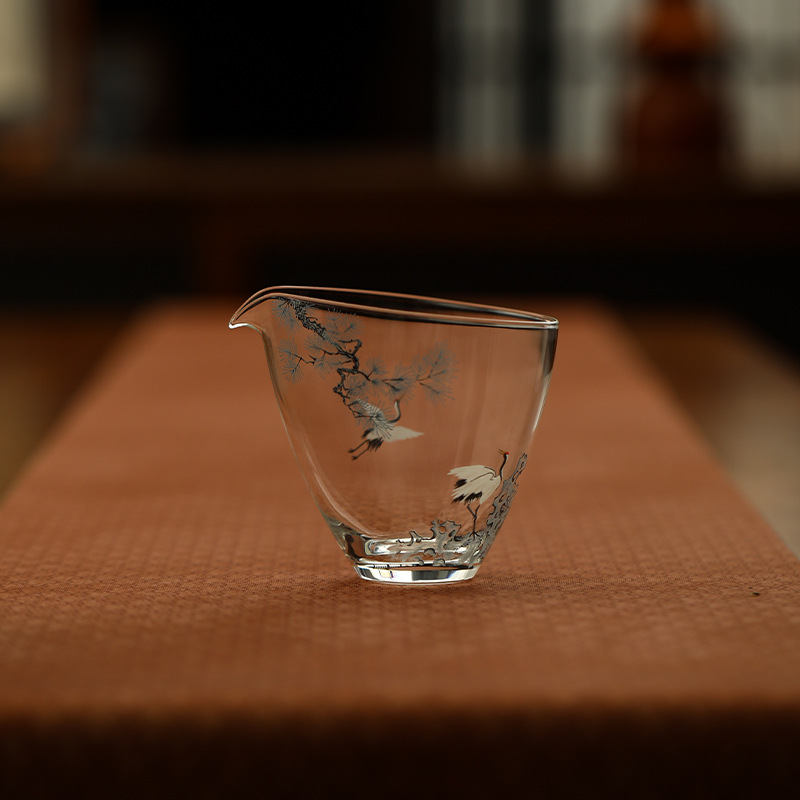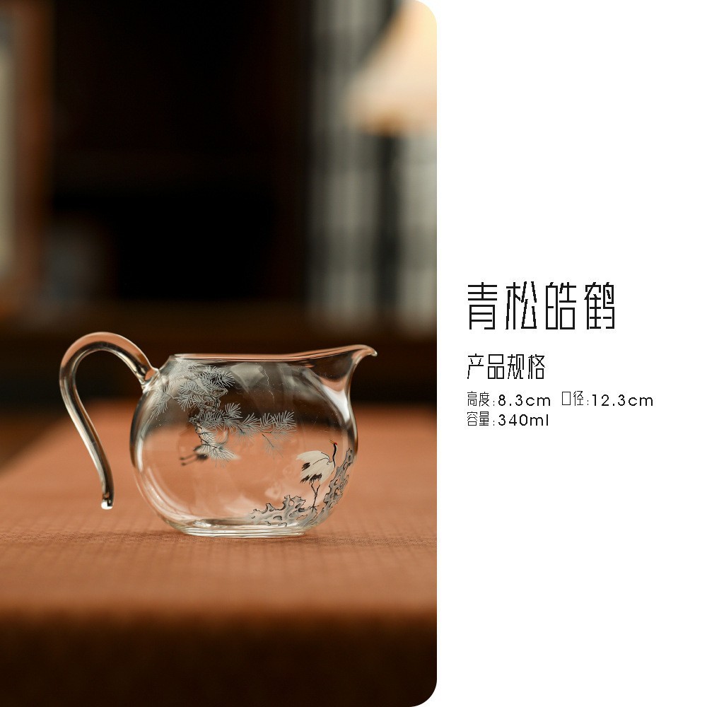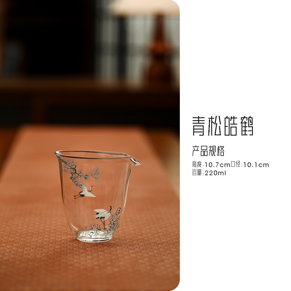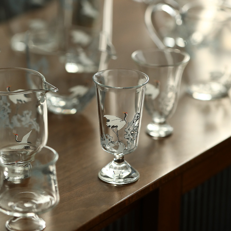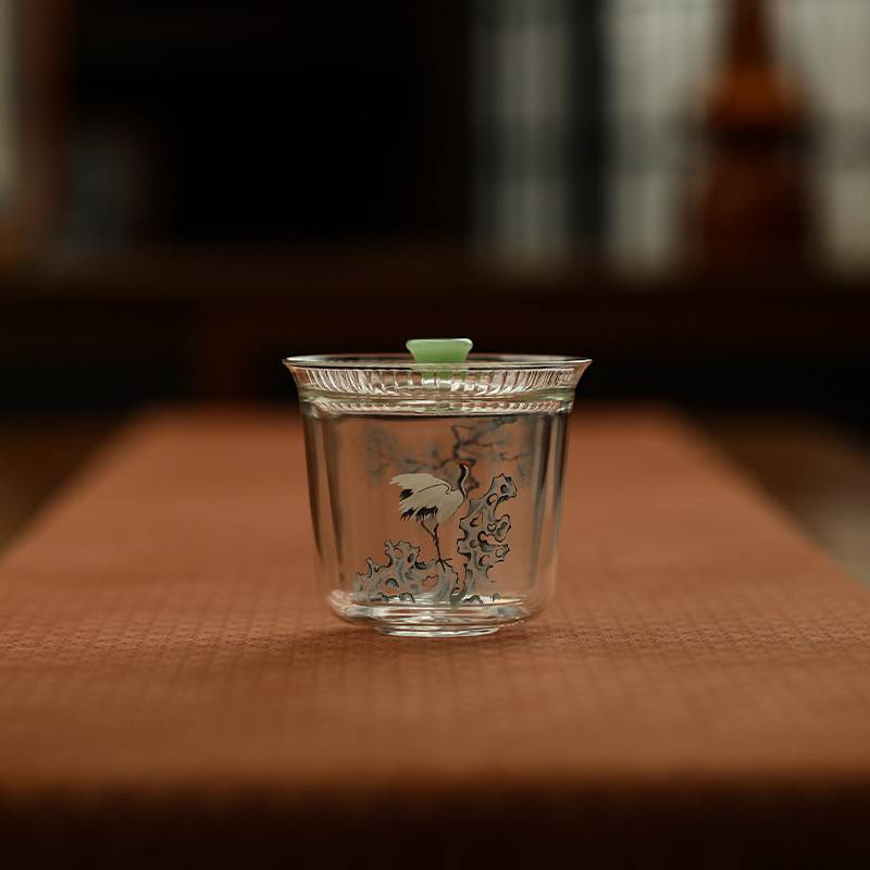 Главная страница > Ручная работа, декорированная сосновым журавлем, чайный набор кунг-фу из высокоборосиликатного стекла: чашка для дегустации, чайник для зеленого чая с двойной крышкой и чашей.