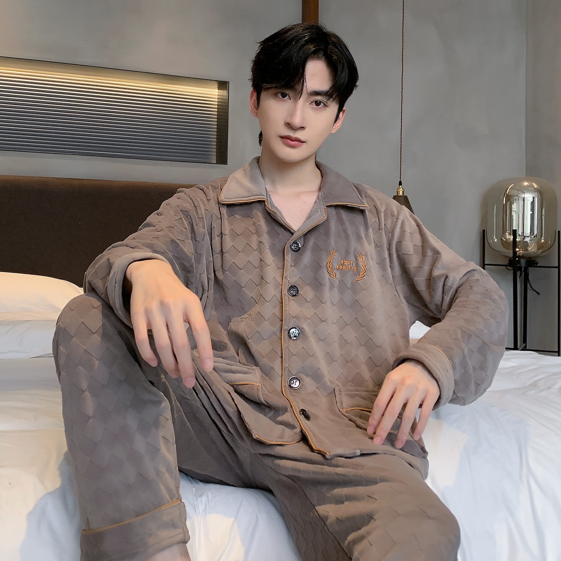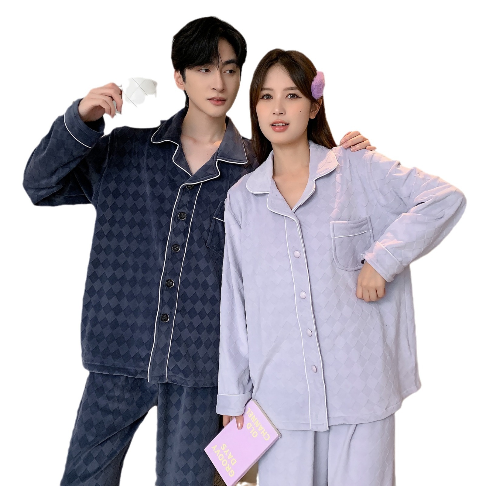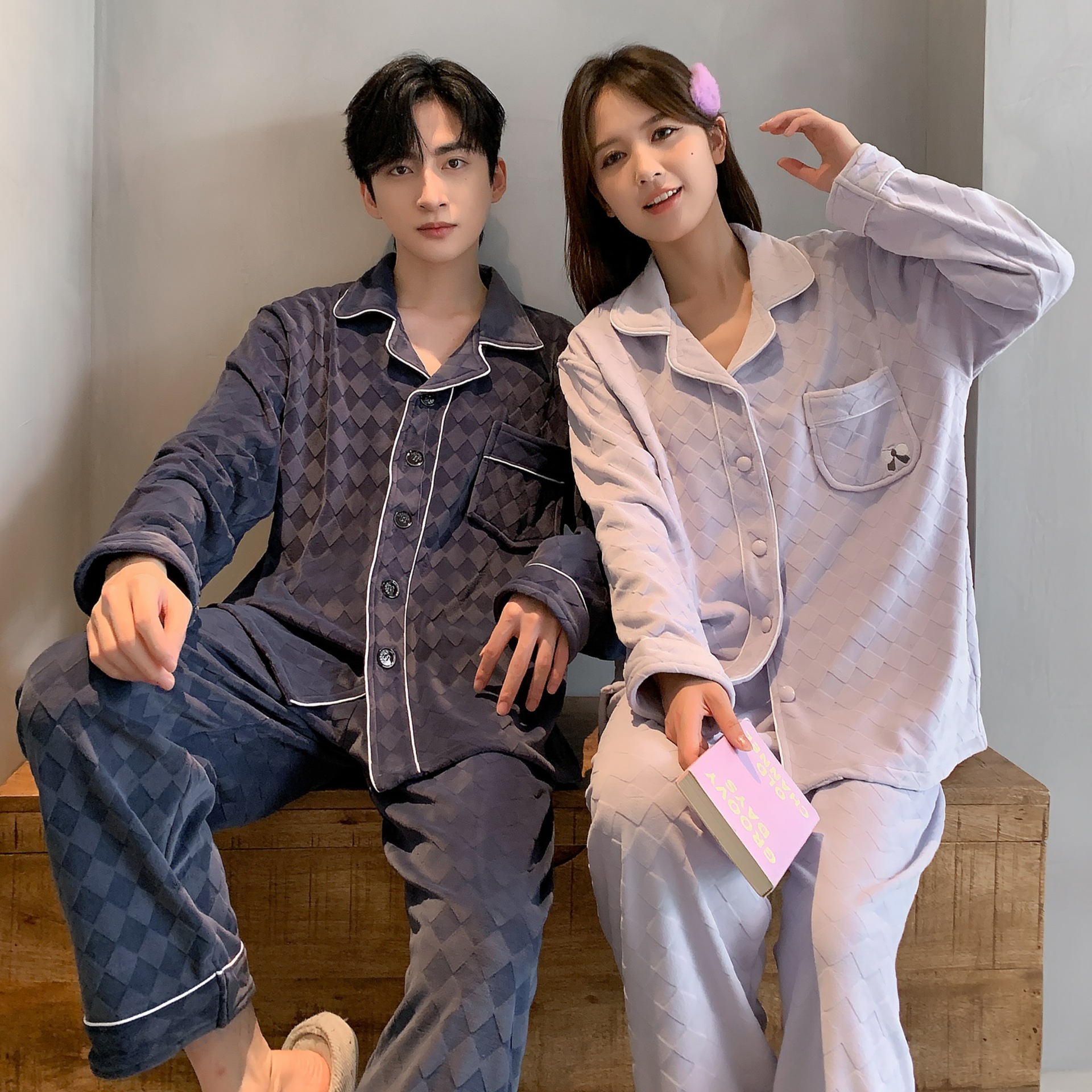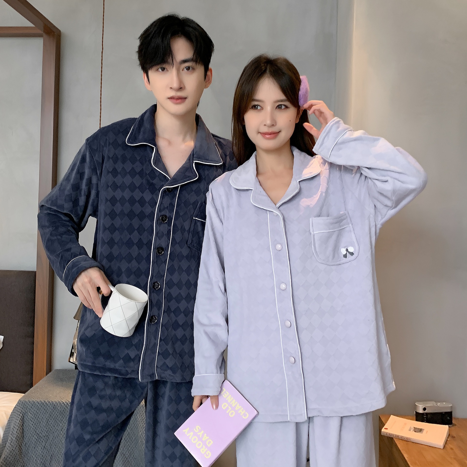 Осенние и зимние пары пижамы женские новые плюшевые островные бархатные теплые домашние костюмы сладкие и могут носить на улице мужчины